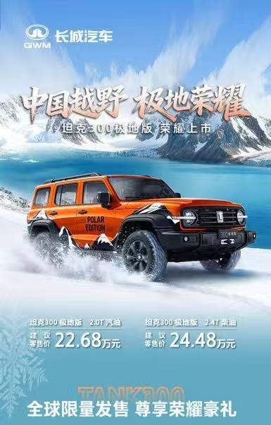 坦克300极地版昨天正式上市了,汽油版22.68万,柴油版24.48万。这车限量
