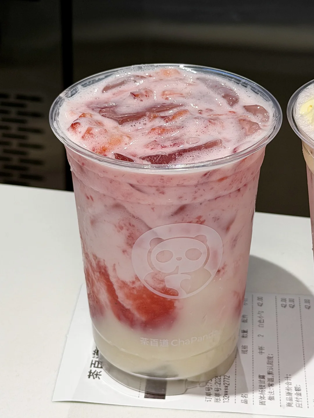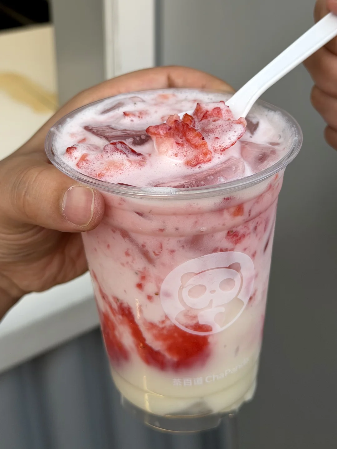 ber…茶百道是把整个草莓园搬去做饮品了吧?!现在买草莓是不是都不用去菜市场了直接去茶百道就好了😅草莓给得也太实在了,每一口都像在啃刚摘的草莓!!!