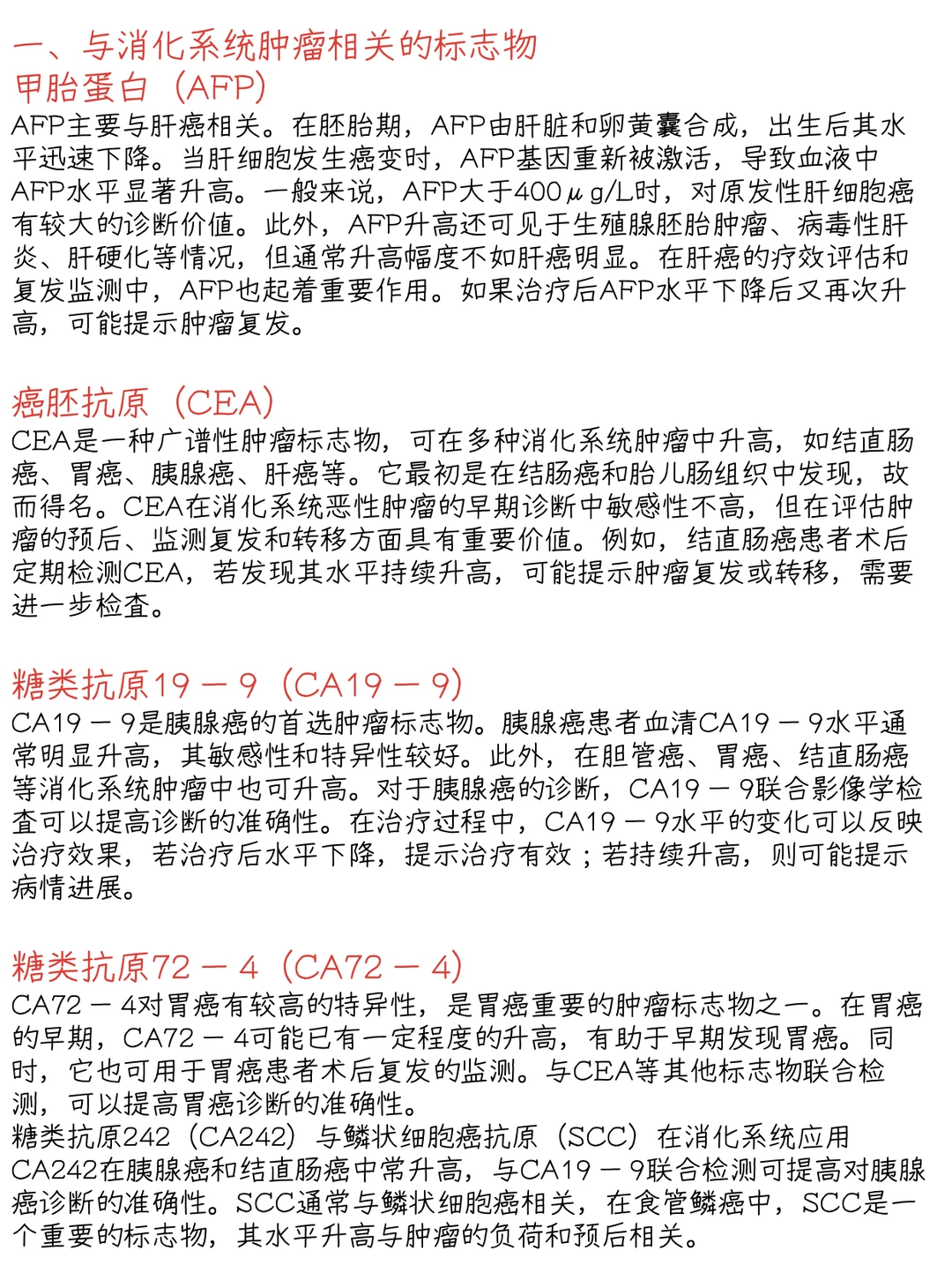 👀肿瘤标志物是由肿瘤细胞或身体对肿瘤反应产生的物质,存在于血液、体液或组织中。 👀它们作为身体的“警报器”,虽然敏感性和特异性有限,不能单独用于确诊癌症,但在癌症的筛查、诊断、预后评估和治疗监测中仍具有重要价值。