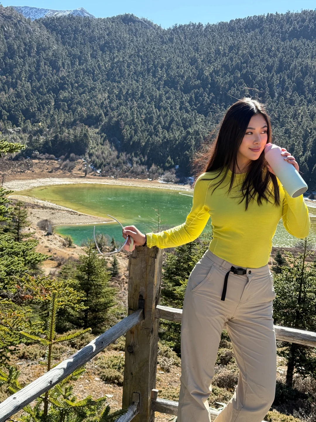 下山的路上又遇见一个清澈的绿色湖泊(丁汝湖)在观景台上拍照太出片了!像是雪山塞给你的最后一份礼物。