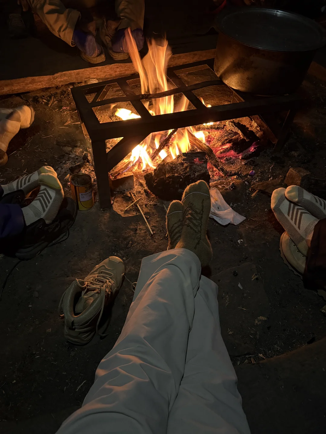 日落之前都冷地钻进四面透风的木屋里烤火,我们带了煤气罐和高压锅,炖了一大锅在香格里拉菜市场买的新鲜牦牛肉,吃完八点多就被冻回帐篷里裹睡袋了,我们三个女生挤在一起,完全没有取暖设备的帐篷冷得夸张,刚躺下时我还因为高反有点头痛,但后来困意袭来,戴着耳塞一觉睡到天亮。