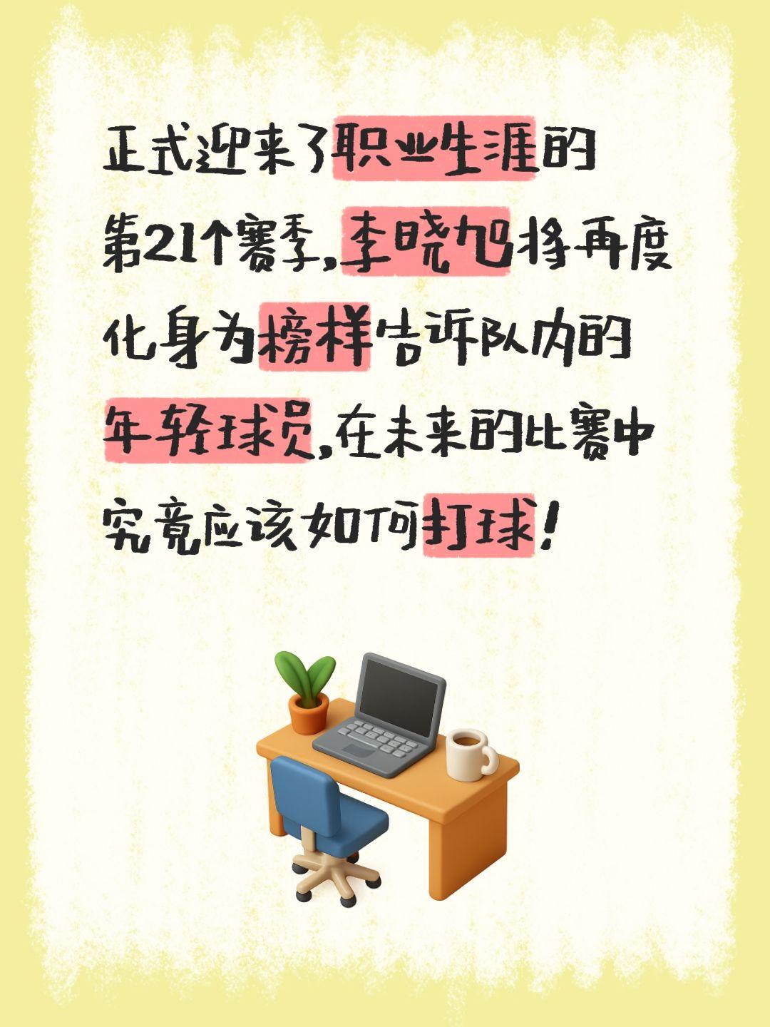 正式迎来了职业生涯的第21个赛季,李晓旭将再度化身为榜样告诉队内的年轻球员,在未来的比赛中究竟应该如何打球!
