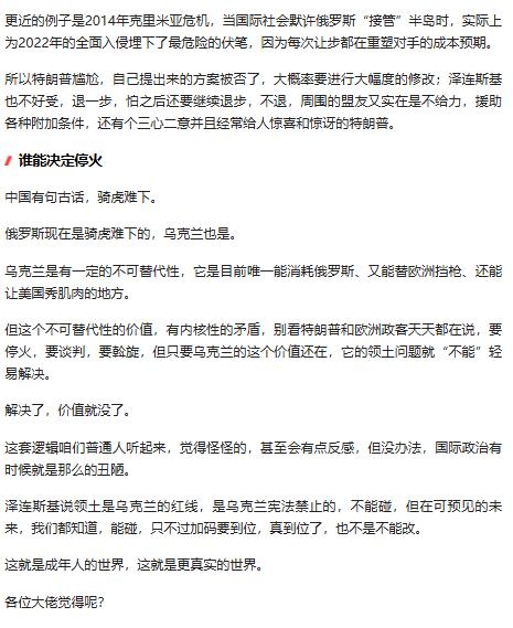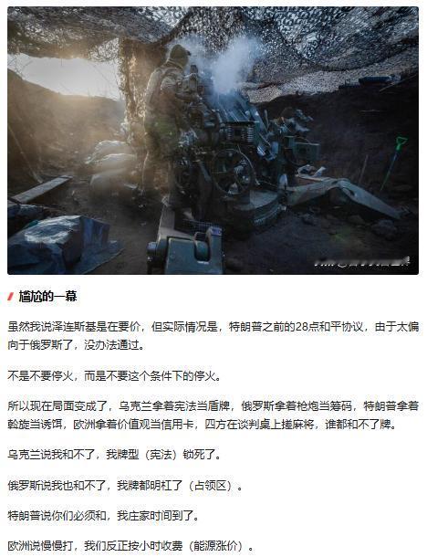 特朗普主推的 “领土换和平” 计划彻底遇挫。 泽连斯基以宪法禁止割地为由强硬拒绝让步。 俄乌战场陷入停滞,西方对乌援助耐心下降。 美欧俄乌四方各有盘算,一方想拿和平奖,一方手握实控领土,一方盼收能源红利,这场博弈的最终走向着实让人好奇。 原文来自:曹小灵看世界《泽连斯基又改口了,特朗普和平计划彻底翻车:绝不割地》
