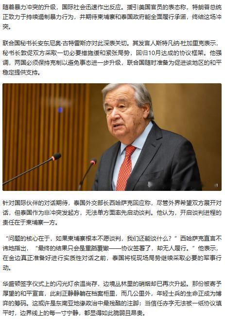 刚签和平宣言的泰柬边境再起战火,3 名泰军阵亡。 双方各执一词,泰国拒单方面谈判,国际呼吁克制,后续能否停火成悬念。 原文来自:日新说Copernicium《东盟担心的事还是发生了,泰国外长:柬埔寨不想谈,我们就继续打》