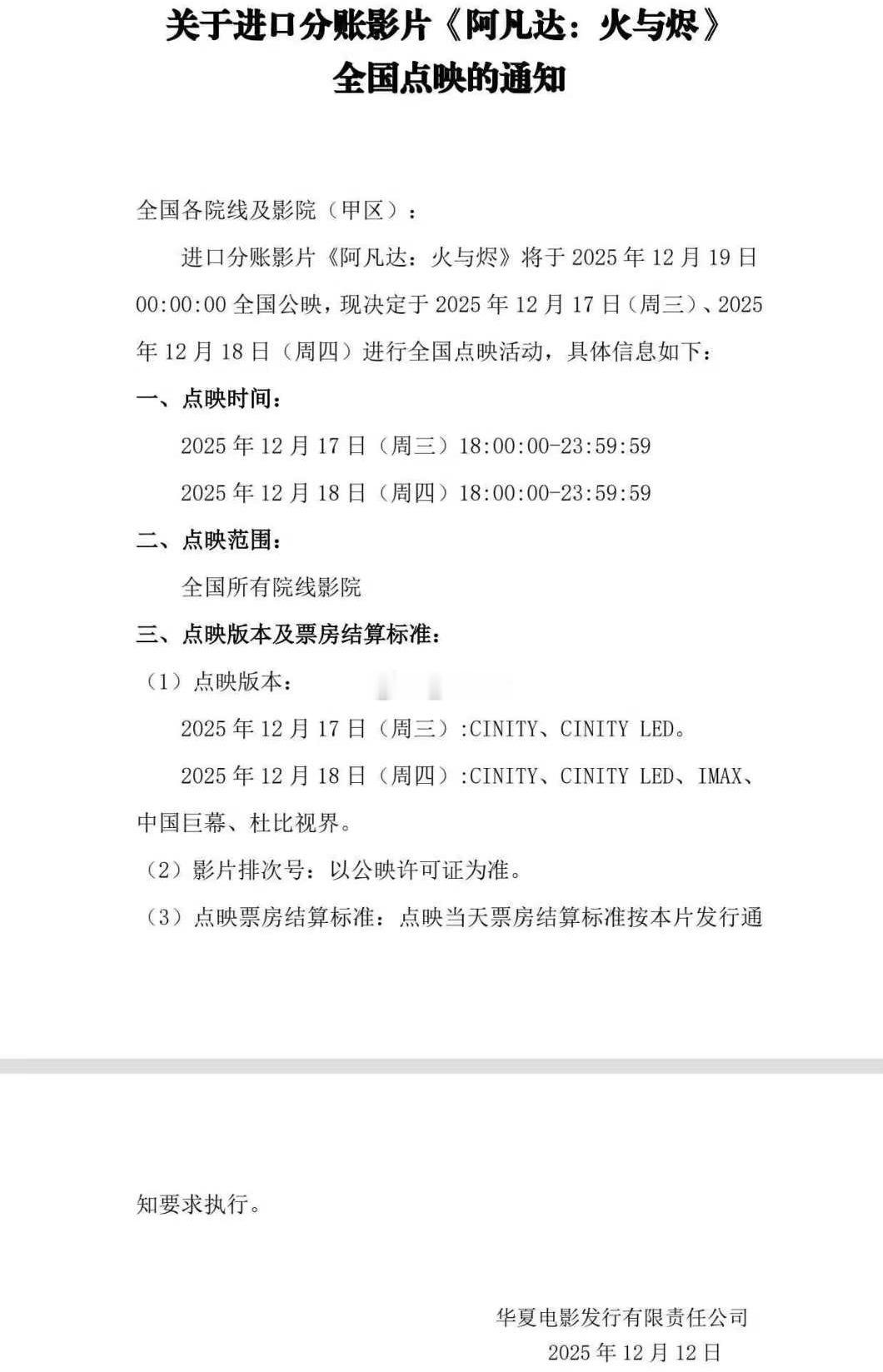 阿凡达3预售已开12.17-12.18点映开启12.17 18:00只放 cinity版本12.18 18:00 cinity、IMAX、dolby、cgs同时放映注意⚠️:IMAX、中国巨幕、cinity、杜比视界这四个特殊版本只有3D版 没有2D版本阿凡达3