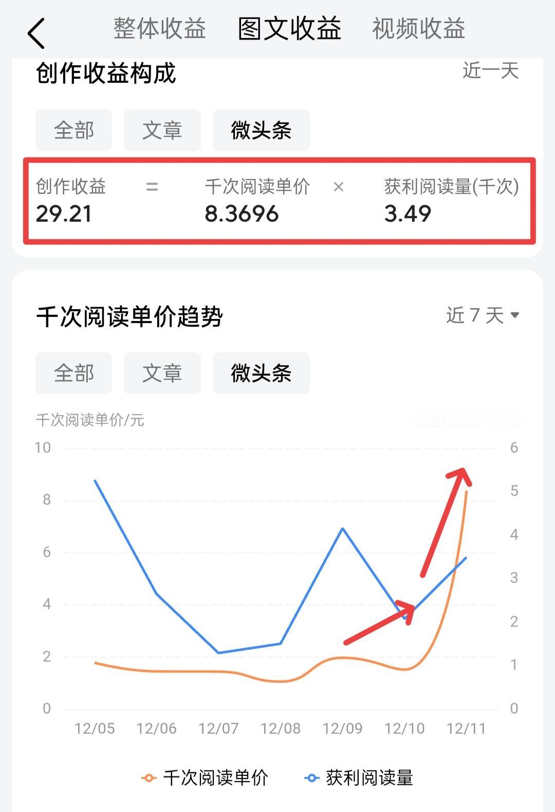太激动了!微头条单价首次突破8.3元/千次,这是几年来最高一次。 不知友友们有没发现2025年,平台对微头条似乎扶持挺高。 很多创作者都果断弃掉了文章,转向了微头条。以往我是绝对不碰微头条,因为单价很低很低,几分,几毛的。 但是经过这一个月来的试水,看来微头条目前确实是有红利,也难怪一些大咖纷纷转向这个领域深耕。 不过,个人总结无论是微头条还是文章,单价浮动都很正常。 并不是说今天有8元千次单价,明天就仍保持这个价格。 除非咱们有持续在同一领域里持续原创深耕的能力,而且每天都要花几个小时甚至更多时间去创作。 否则,单价掉下来浮动很正常。不管怎么样,此次能够获得如此高的单价我还是很激动和欣慰的。 事实证明,只要持续输出,总会有所回报。 不过,小乐的建议,当我们有时间的时候,可以多更新文章。 如果没有时间,那么可以多写几篇微头条。 毕竟,微头条创作简单一些,可以在高铁上,车上,拿着手机书写,不需要为配图而烦恼。 就相当于发个朋友圈,关键万一爆了,还有一笔可观的收入,何乐而不为呢! 不知各位友友们,微头条的单价如何呢?