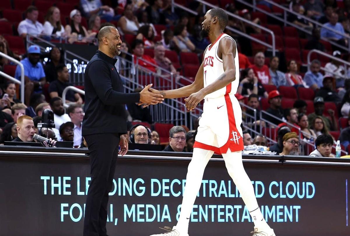 你以为火箭签杜兰特是买了个得分机器? 他们真正得到的,是个体系开关。 他场均只出手18次,比篮网时少了近5次。 但你看火箭全队:三分命中率飙到37.5%,联盟前五。 秘密就藏在那6.2次助攻里——生涯新高。 每一次他持球吸引两人包夹,下一秒球就精准找到被放空的射手。 防守端,他场均1.8次盖帽,像蜘蛛一样覆盖禁区。 高阶数据不会说谎:真实正负值+7.3,全联盟小前锋里只输塔图姆。 这意味着他在场的每一分钟,火箭净胜对手7.3分。 最关键的改变在这里:火箭每百回合得分,比上赛季暴涨8.7分。 球权在他手里流转,而不是终结。 他少投了5%的篮,却激活了100%的火箭。 这不是一次球星的转会,这是一套体系的诞生。 他放下镰刀,成为了扳机。