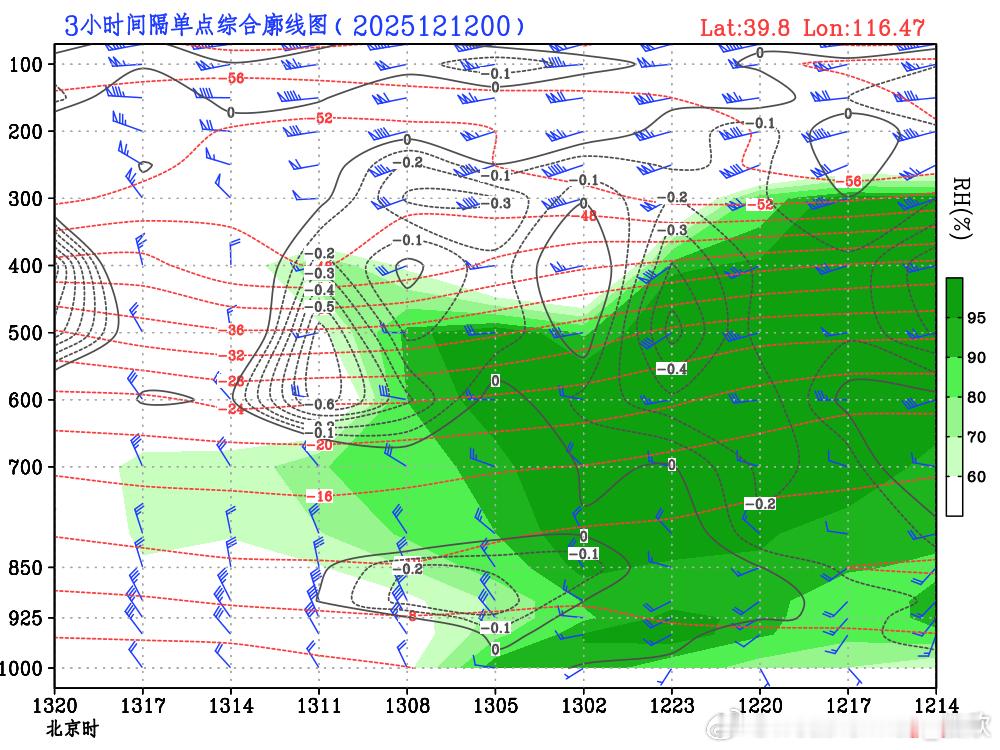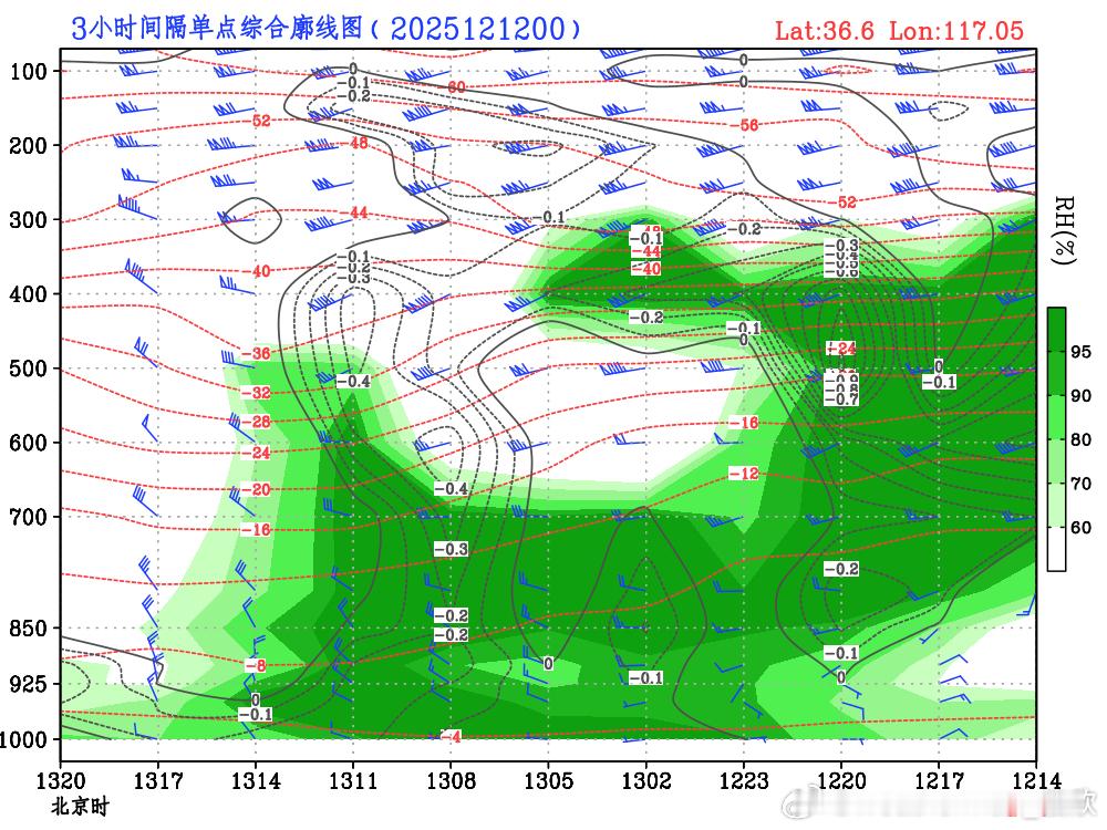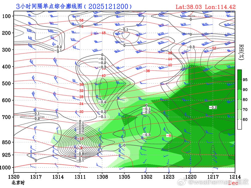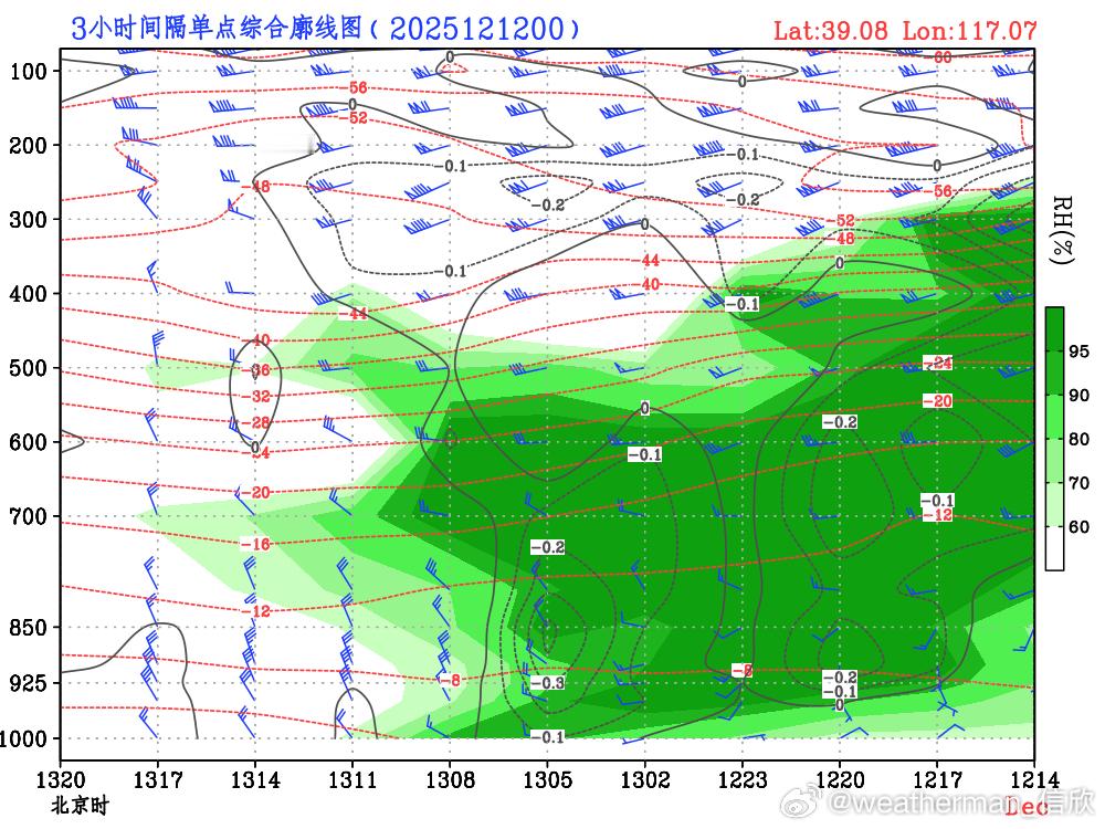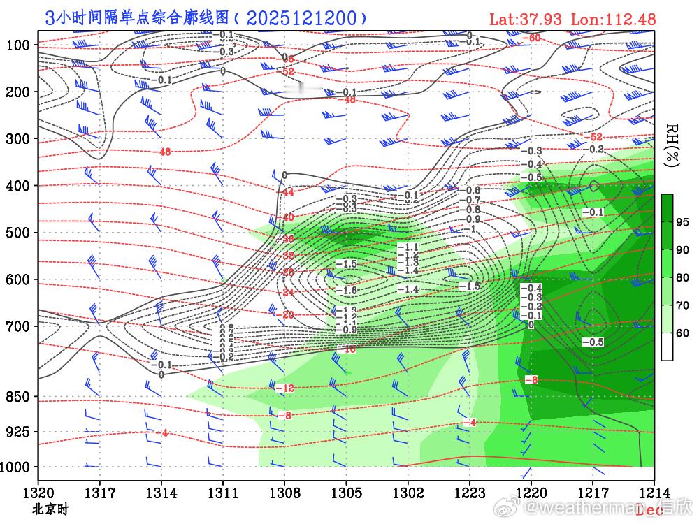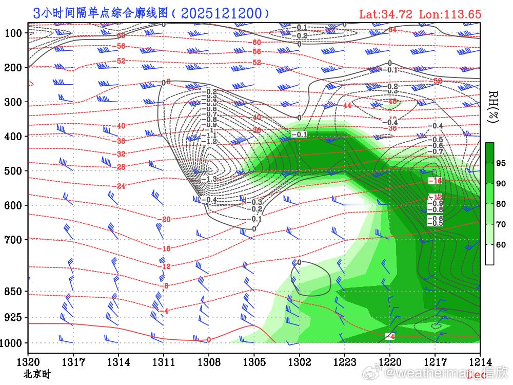 【雪何时停】今天太原、郑州、石家庄、北京、天津、济南先后迎来今冬初雪。图1-6为上述6城市的综合廓线图。从水汽和动力条件看,太原和郑州今晚20时前后,降雪可能就会停止。石家庄今晚20时以后,降雪减弱趋于结束,但还有弱的动力抬升,因此不排除13日凌晨还有。北京在13日05时前后基本结束,天津比北京略晚,但估计13日06时以后也结束了。济南降雪结束最晚,估计要13日11时前后。