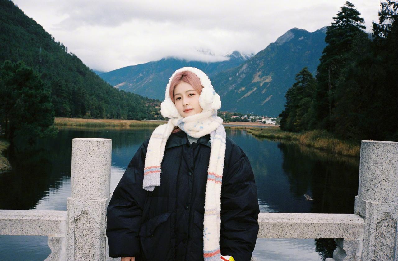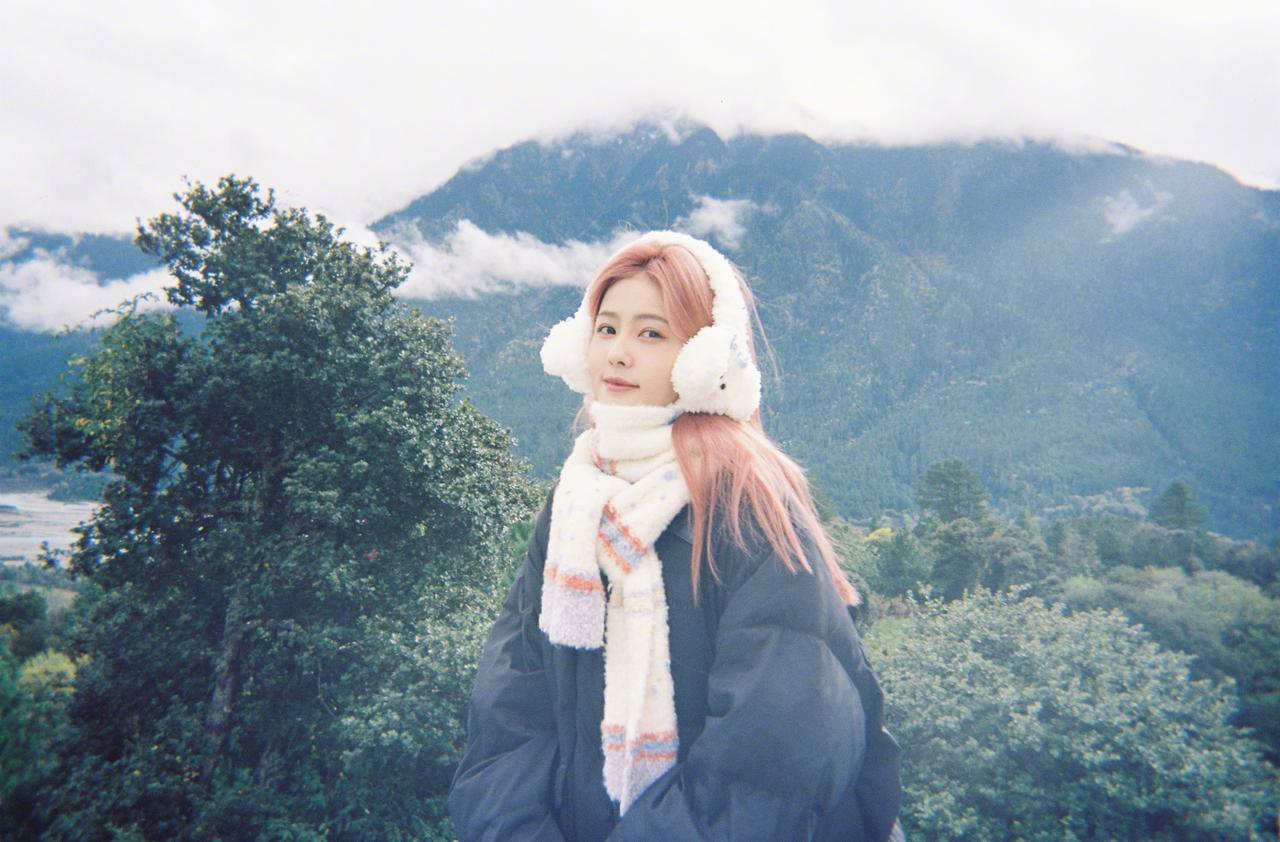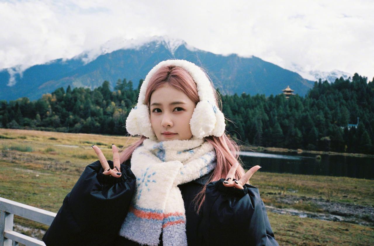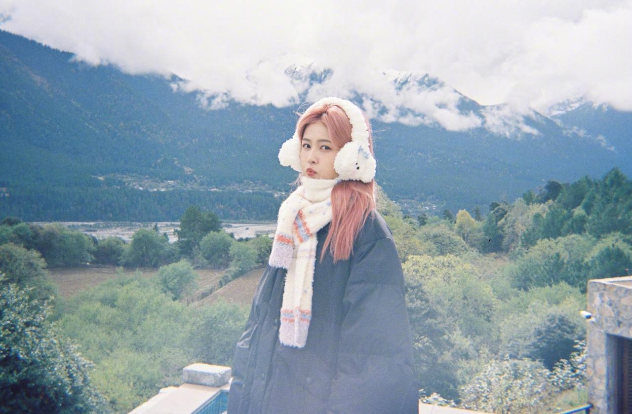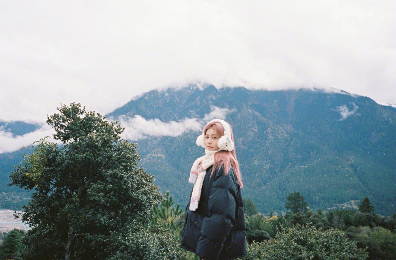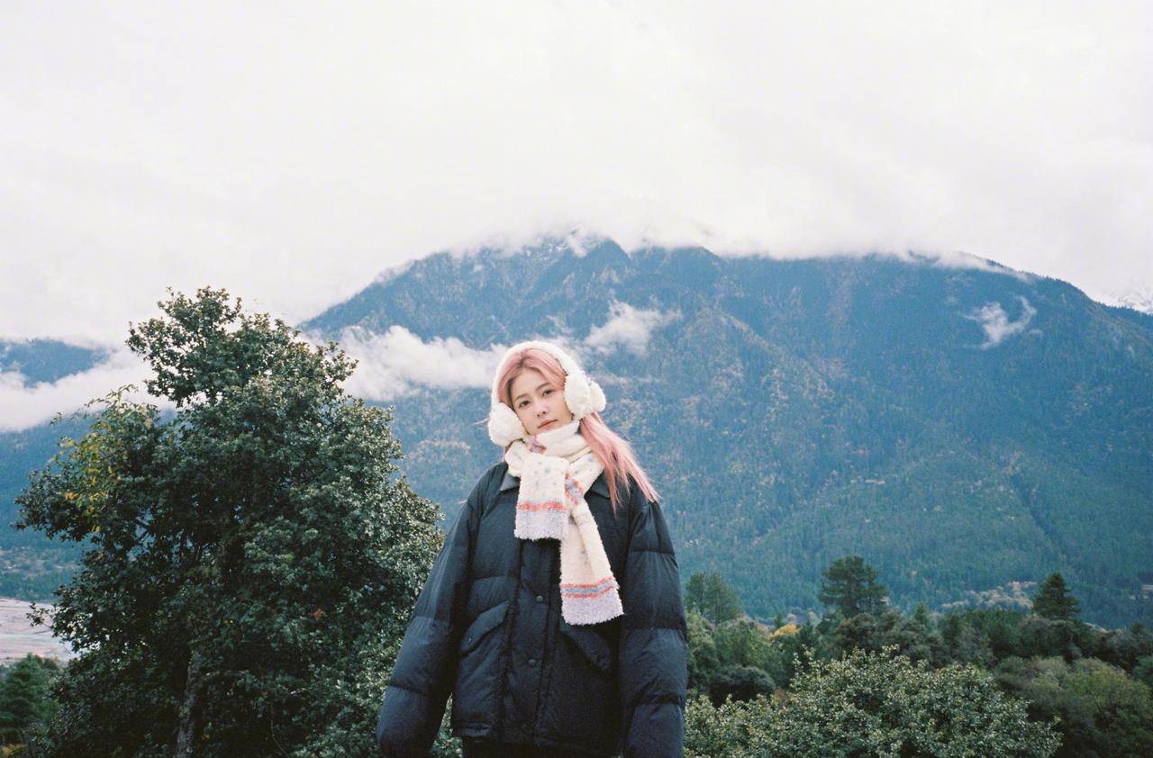 白鹿粉发风景库存照,粉发小菠限时返场,和小狗合照明媚又可爱啊~