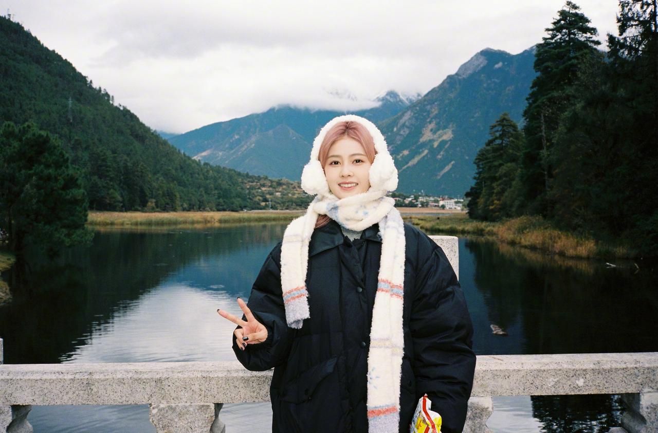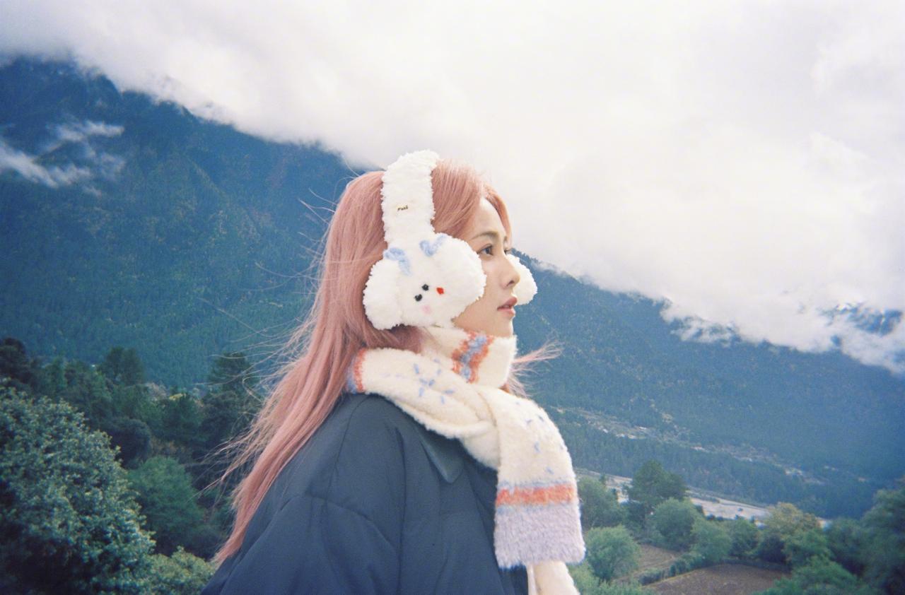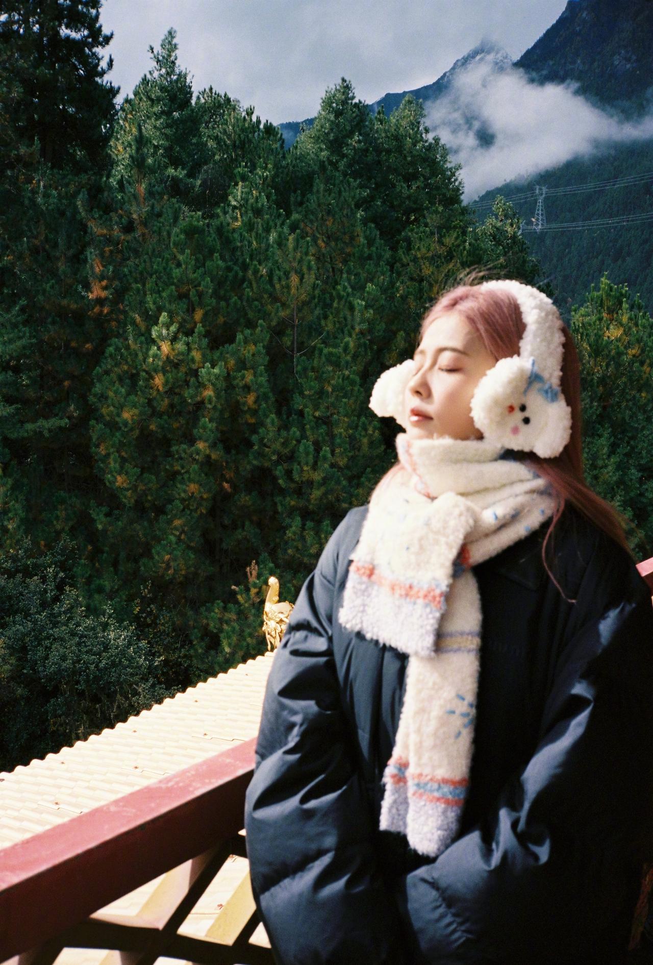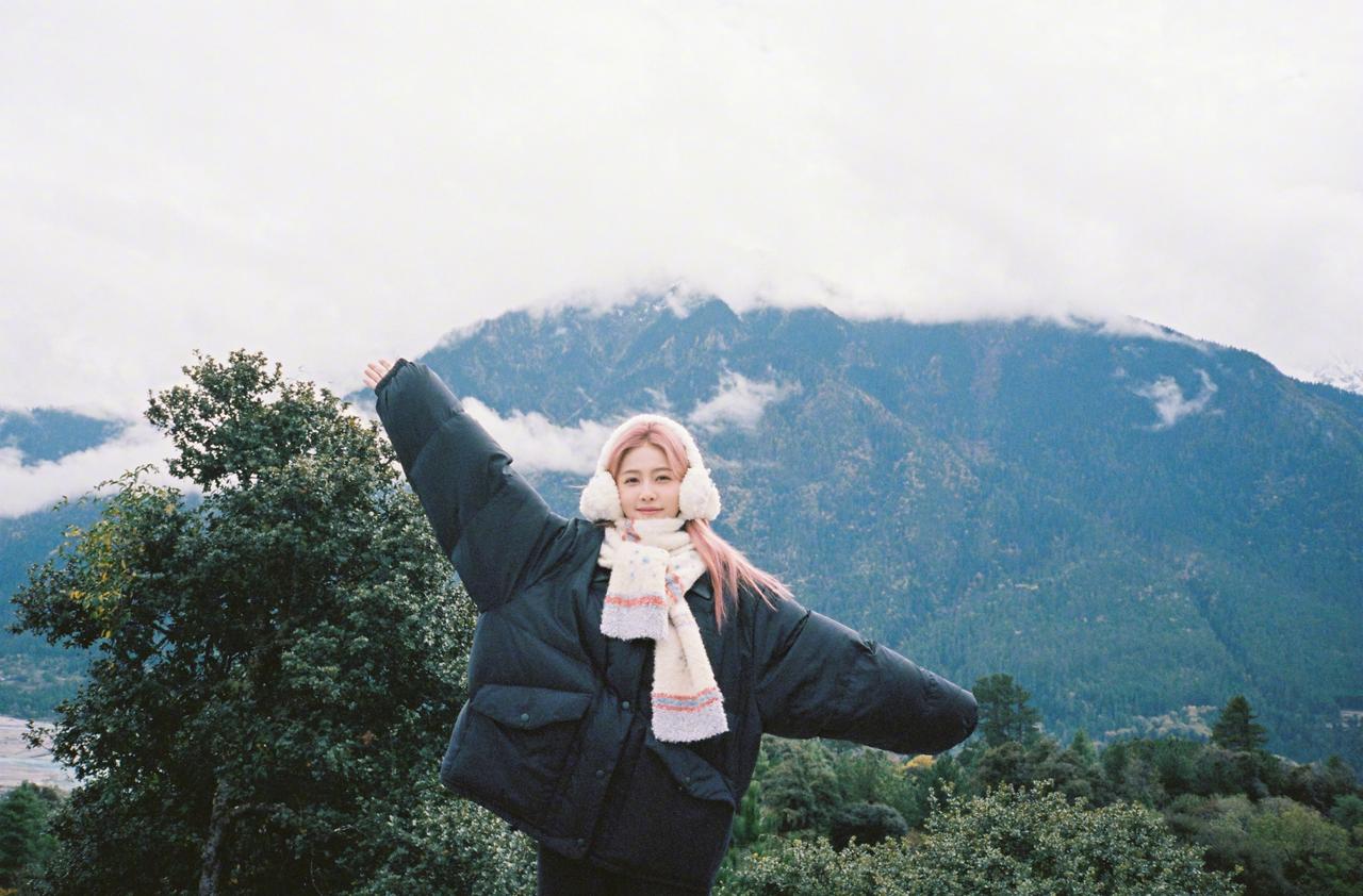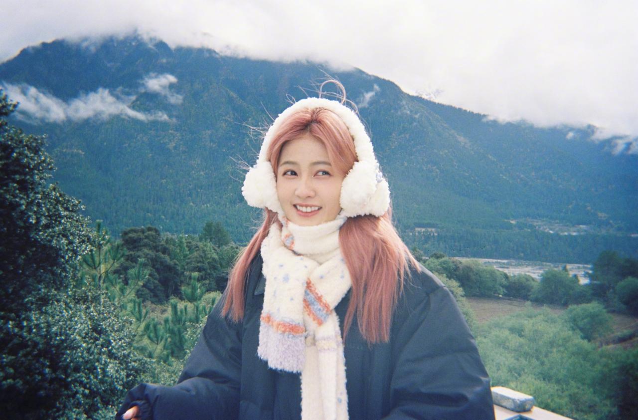 白鹿粉发风景库存照,粉发小菠限时返场,和小狗合照明媚又可爱啊~