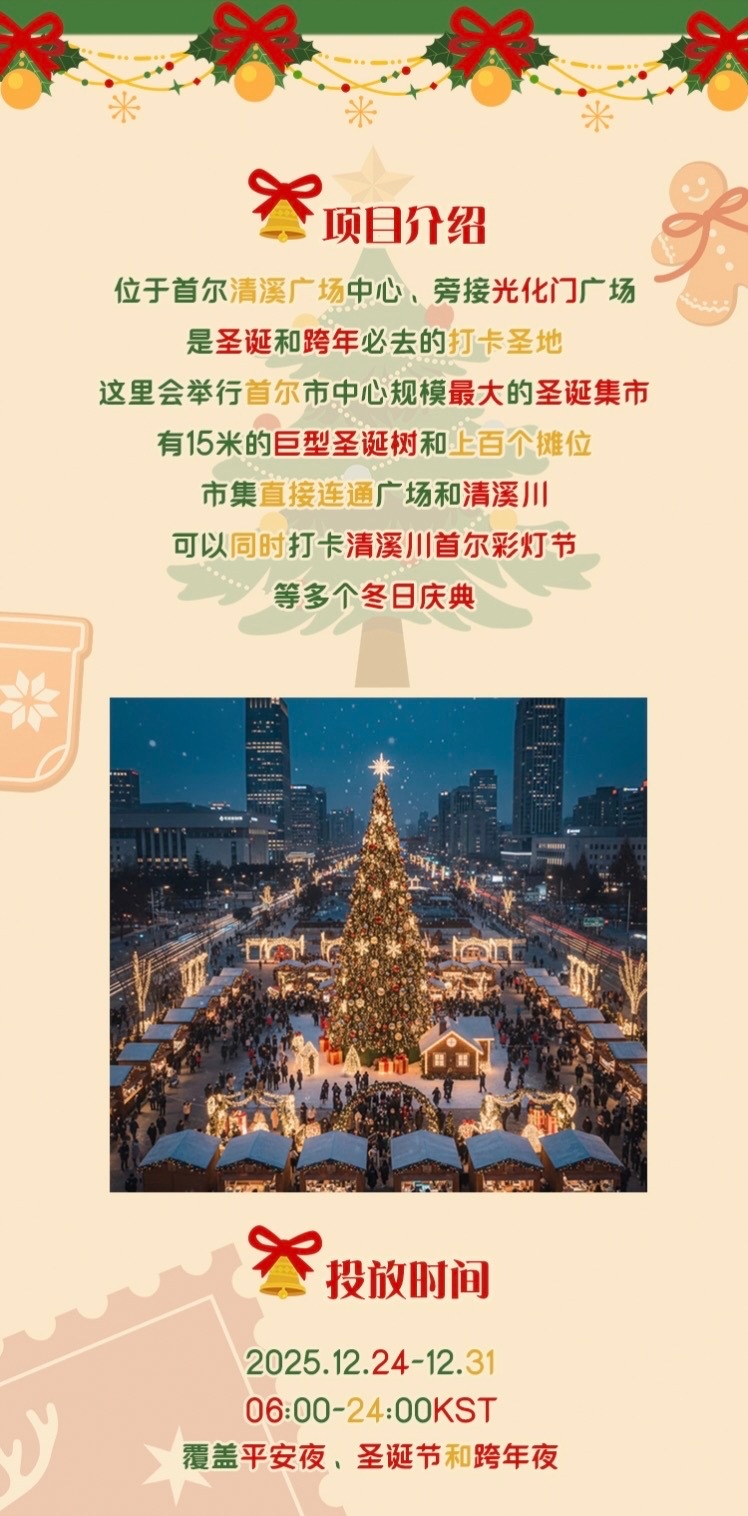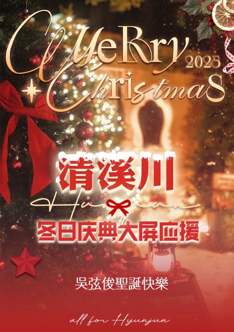 吴弦俊·清溪川冬日庆典大屏应援🎄坐落于光化门到清溪川一线,此地点人流与车流密集广告受众,应援涵盖平安夜、圣诞节、跨年💫聚焦万千星光!