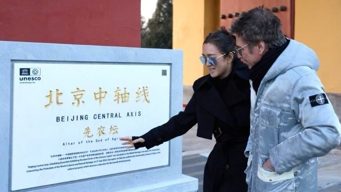 巩俐和老公打卡北京中轴线 巩俐携老公甜蜜漫游北京中轴线✨ 从永定门漫步至景山,每一帧都是藏不住的幸福~