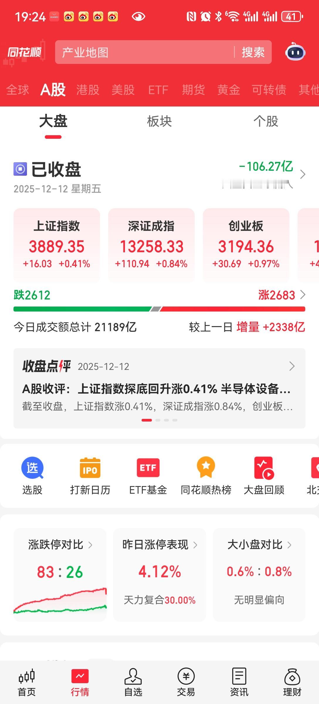 放量上涨 今天开盘震荡调整,最后放量收阳。 今天资金流出100亿。放量2300亿。放量主要集中在下午。大盘也是大科技卷商,保险,在下午开始反弹拉起来。 指数上涨上涨的个股减少。这个是要注意的,大票一涨,吸金还是很严重。 今天暂时看就是反弹,现在的位置,和点位想反转感觉不到时候。想参与的还是反弹为主。很难做。 空仓观望。等待[what][what][what]