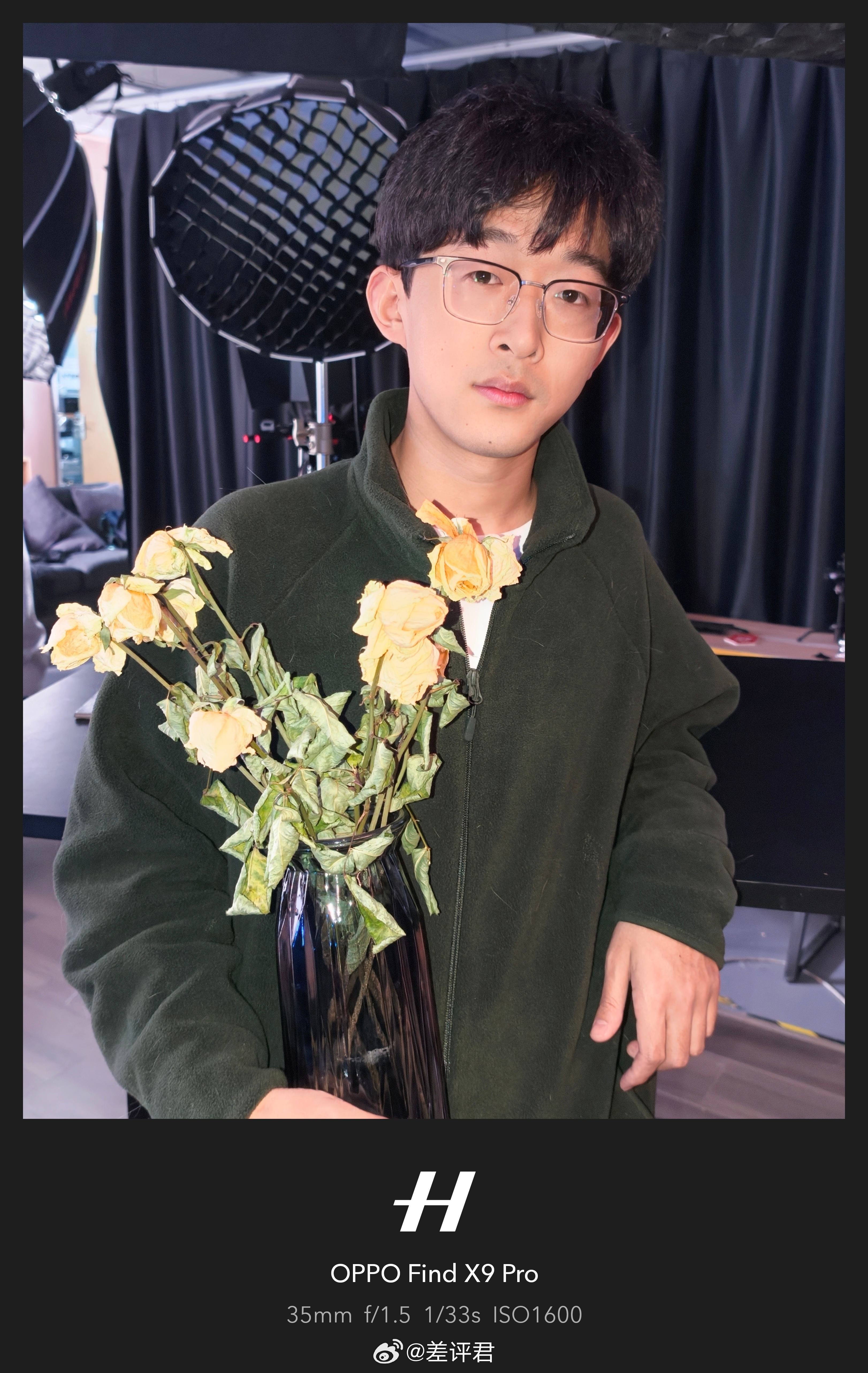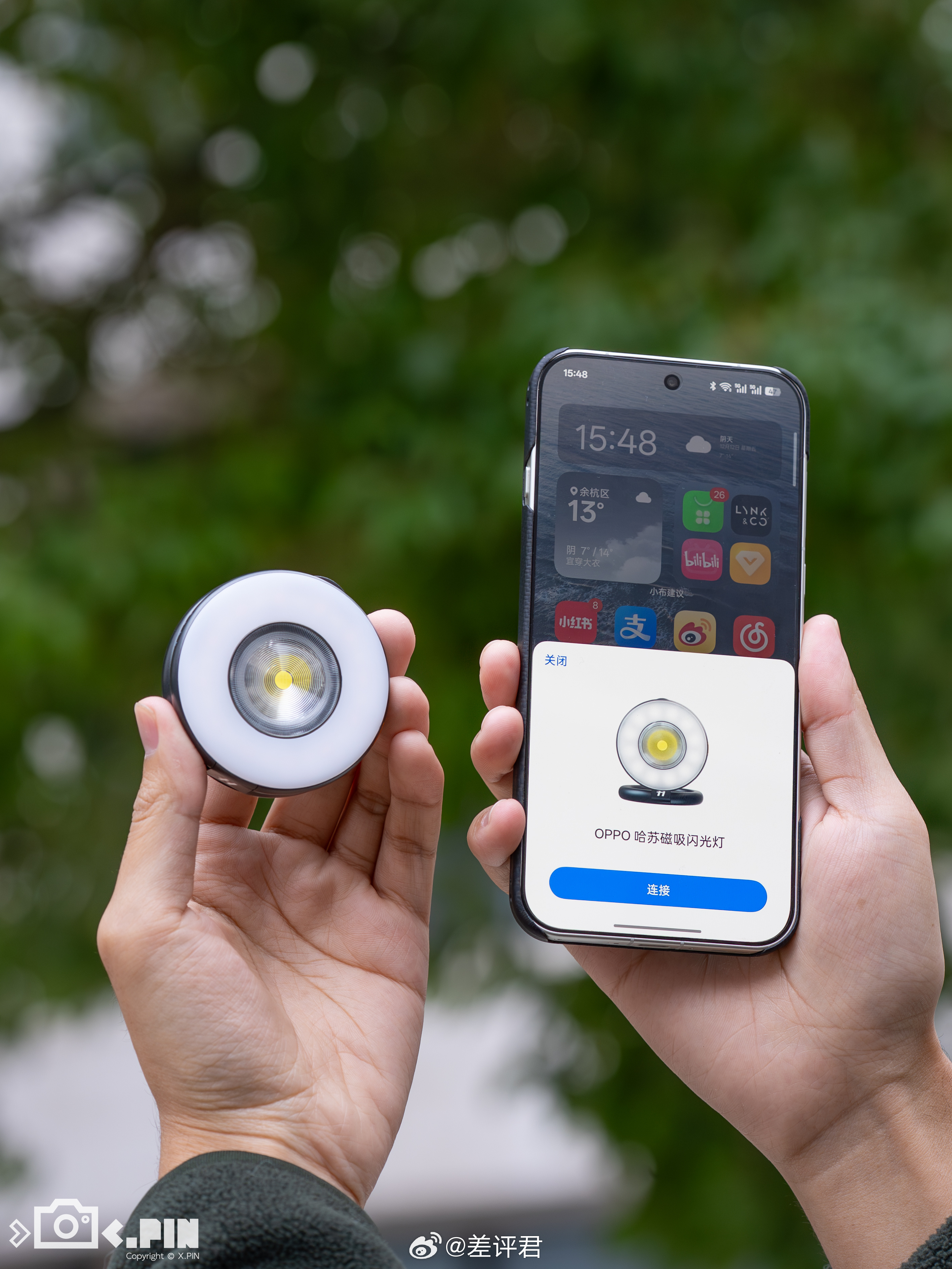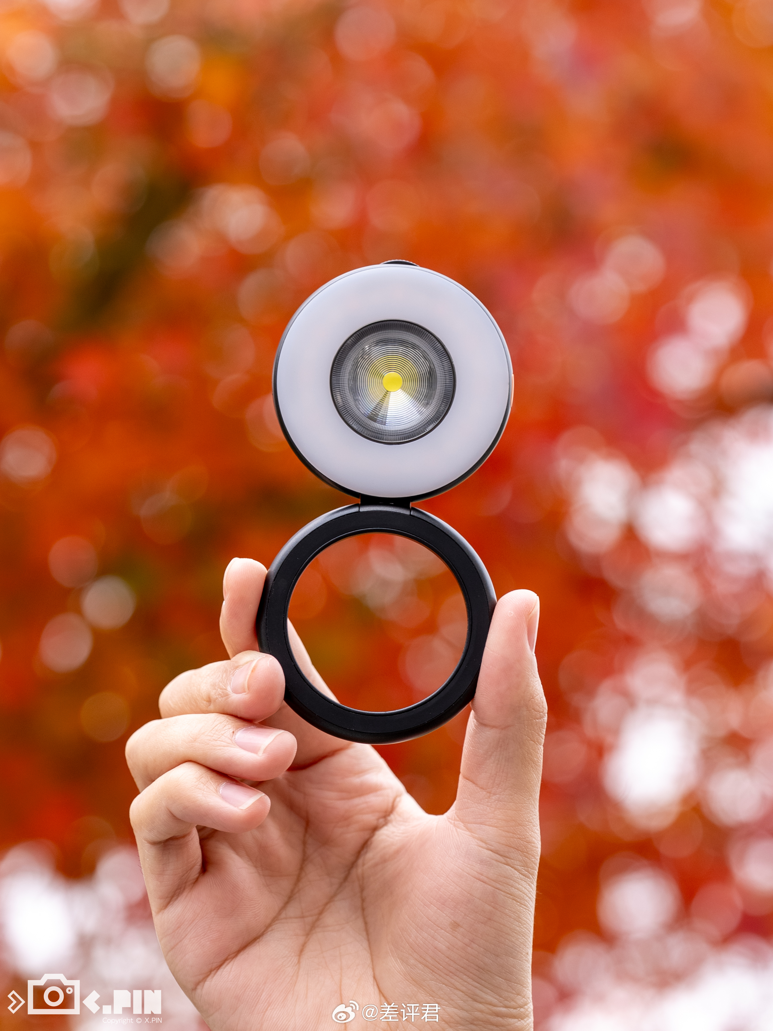 #差评说数码# 发布会过了那么久,OPPO 这个磁吸闪光灯终于开卖了,全名挺拗口,叫“哈苏专业磁吸闪补光环灯”,说白了就是闪光灯+环形补光灯的这么一个形态,可以翻转自拍。当然它最关键的地方是能跟 Find X9 系列手机搞算法联动,还能直接在手机里调参数,这点就属于第三方配件没法碰瓷的了。具体效果的话,我随机拉了个壮丁给大家试了下,图8是手机原生闪光灯,图9是磁吸闪光灯,都是在影棚比较暗的环境下拍的,人像质感这块儿确实提升蛮大。