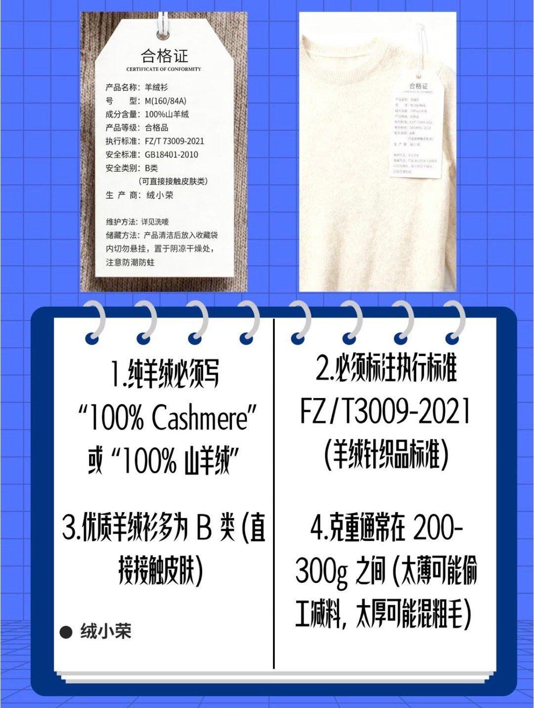 见识一下100%纯羊毛还有人不会辨别纯羊毛吗?!【看水洗标,三招辨清羊毛羊绒】选购时直接看水洗标最省力:1️⃣ 看成分:标“100%羊毛”为绵羊毛,柔软保暖;“100%羊绒”指山羊绒,更轻软价高;混纺会注明比例。2️⃣ 认证标识:留意“纯羊毛标志”(黑白标)或“纯羊绒标志”(金标),代表国际认证品质。3️⃣ 警惕模糊词:避开“羊毛绒”“绵羊绒”等非标准名称,多是化纤混充。✅ 记住:真羊绒触感滑糯、价格偏高,结合水洗标+手感,轻松避坑!