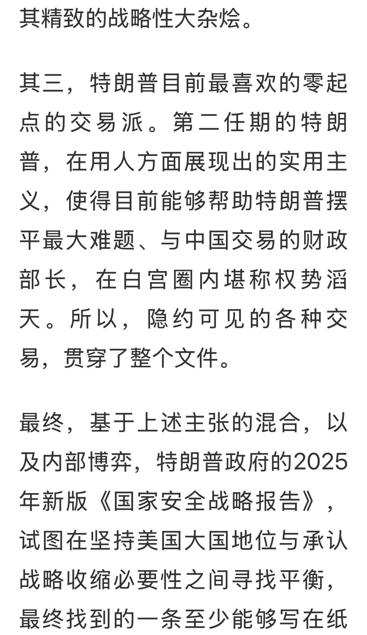 最大的误判就是认为美国要战略退缩,乌克兰打到这个程度,面临如此压力,都没有说战略退缩,俄罗斯原来计划两个小时拿下乌克兰全境,现在都快四年了,死亡超过一百万人了,也没有说战略退缩,马杜罗已经是兵临城下了,还在硬扛着,哈马斯领导人像割韭菜一样,一拨一拨地被打死,但是,哈马斯还在战斗。美国的超级大国地位还没有人能撼动,他为什么要战略退缩?他仅仅是战略调整而已,如果你听了卢比奥和万斯关于中美关系的分析,就会知道,他们对中国的了解太深刻了,太系统了,反观我们的专家,都是一句话,赢麻了,赢了两次,什么时候都是这两句话,你看到他们说过别的吗?卢比奥和万斯讲四十年来的中美关系,不能不让你惊出一身冷汗,他已经调整了战略,转轨了,开始迂回包抄了,你还以为是不战而胜,岂不是太危险进?