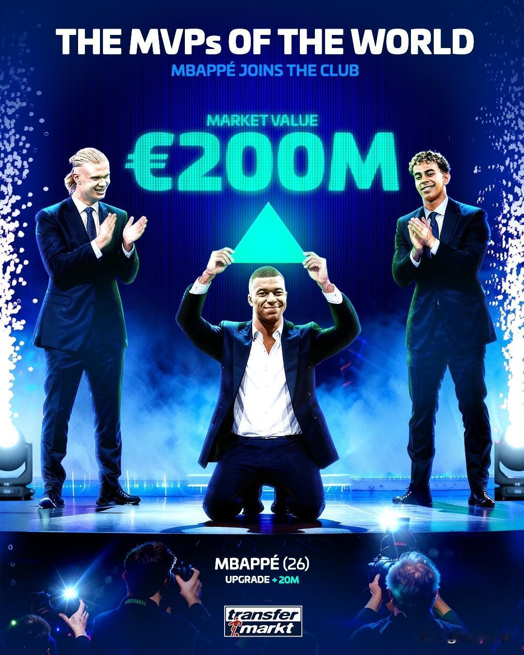 三雄争霸,姆巴佩身价重回2亿欧元并列世界第一! 刚刚,《德国转会市场》更新了西甲联赛球员的最新身价,备受关注的当属姆巴佩了,身价从1.8亿欧元上涨2000万欧元,重新回到了2亿欧元,和哈兰德,亚马尔并列世界第一。 虽然皇马近期战绩不佳,但是姆巴佩的表现却无可置疑,本赛季为皇马出战了24场比赛贡献了26球4助攻的数据,进球效率不输哈兰德。 姆巴佩和哈兰德2亿欧元的身价可以说实至名归,但是亚马尔的2亿欧元身价就有点水分了,要不是年龄的原因,亚马尔的身价最多也就1亿欧元左右。