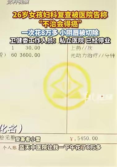 河北石家庄,26岁女孩去做妇科复检,结果医生告诉她,要做手术,否则会得癌,于是她的小阴唇被切除了,花了8万多元,可手术之后,她的病非但不好,还又痛又痒的,事后她发现,多名患者,都是这么被忽悠做手术了。 网友评论: 首先,看病最好是去公立医院,其次,如果公立医院诊断的有比较严重的病,建议在换一家或者两家医院检查一下,如果三个医院的结果都一样,那就考虑去哪个医院治病。 24岁的时候,09年,常州什么医院,也是这样被私立医院忽悠做了包皮手术,我只是前列腺,说我是性病,花了几千,一直忽悠我说还要二期治疗,我察觉不对,跑到人民医院治疗,开了一点药就好了,人民医院都说那是家骗子医院。 私立医院,私立医院就不是在中国土地上?就不受监管部门管理了?这是渎职。 这是一个缺德带冒烟的时代,骗子可以光明正大的行骗,各种各样的网贷诈骗手段到处充满着邪恶,本该花样年华却要背负一身伤痛。太让人痛心了。