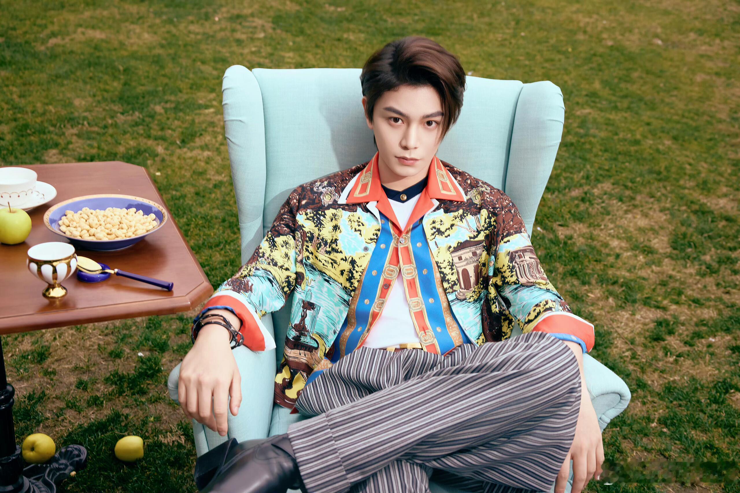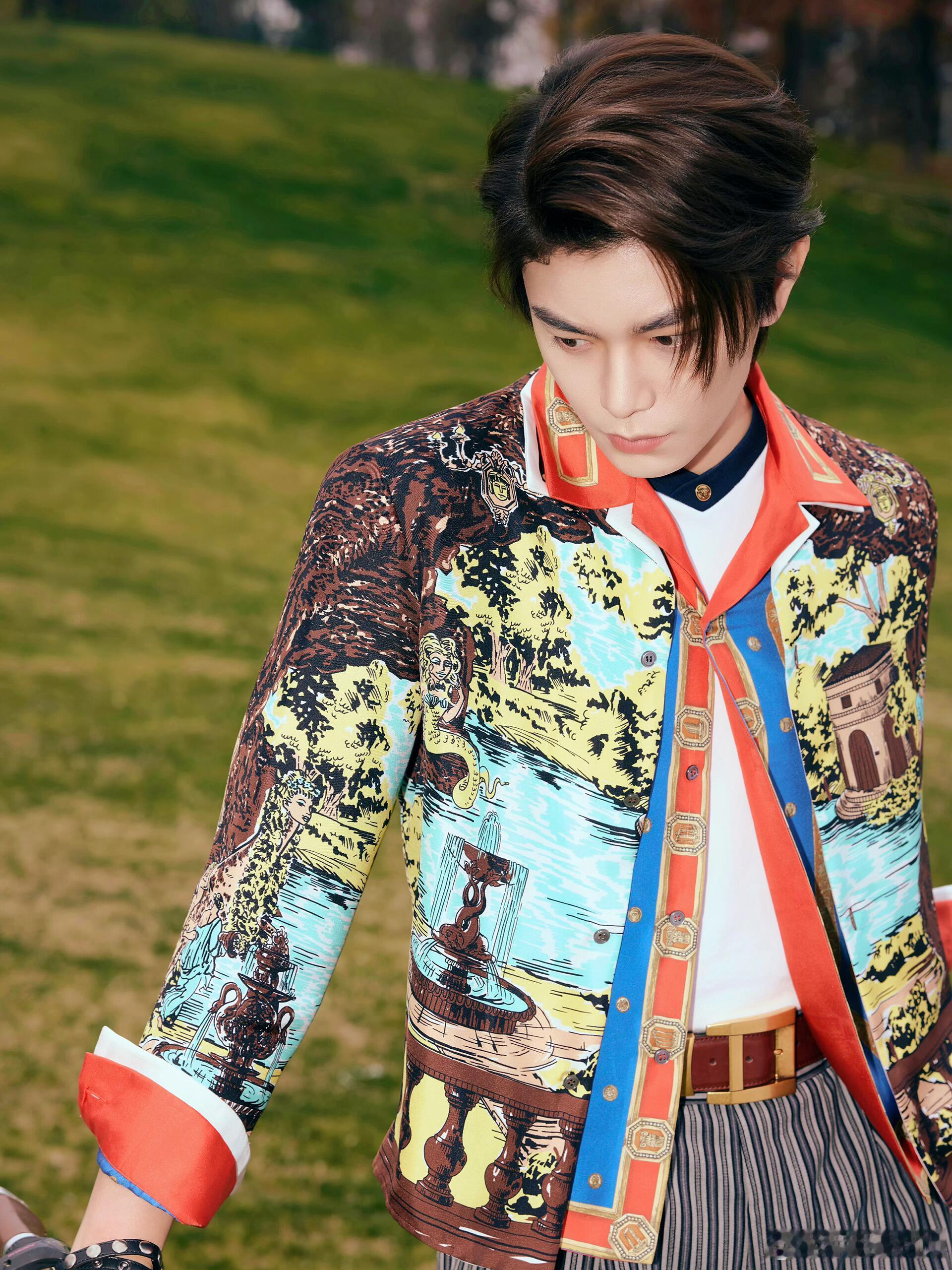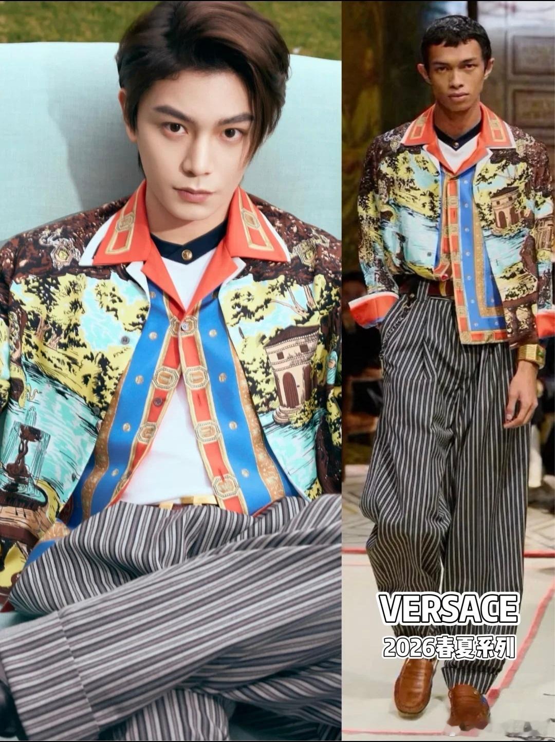 12.12丁禹兮受邀出席成都范思哲活动,全球代言人身穿Versace 2026春夏系印花西装搭配条纹长裤贵气的花花公子,行走的时尚荷尔蒙~