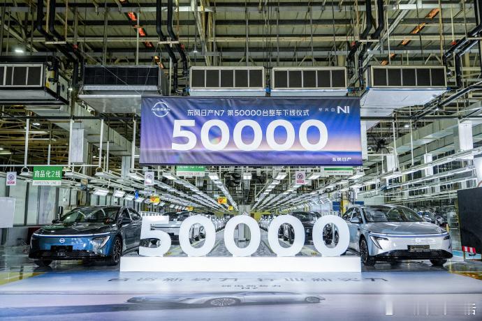 合资纯电杀疯了!东风日产N7五个月狂冲5万台下线,这实力绝了👏AI零压座椅带按摩超舒服,防晕车技术太懂家庭党!高通8295芯片+实用智驾,老人小孩都适配。三电靠谱投诉率超低,续航不虚标还快充快,细节拉满又踏实,家用纯电选它闭眼不踩雷~ 第50000台日产N7正式下线合资纯电爆款200天5万台下线