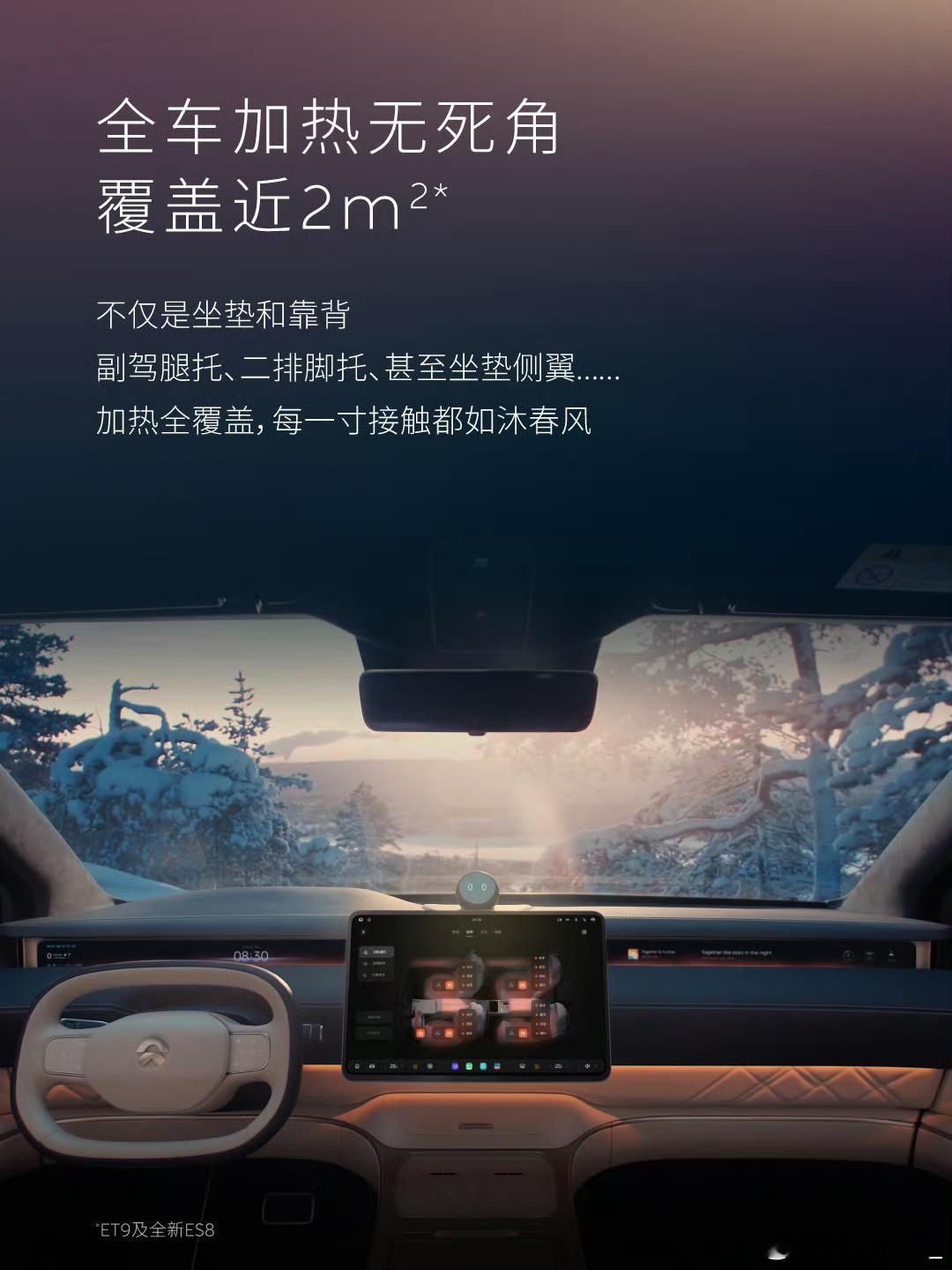 蔚来全新ES8天气再冷,ET9和ES8也能让你一上车就被暖意包围。全车加热面积近2㎡,连扶手腿托都照顾到,三挡独立温控每个人都能调。出门前远程启动,坐进去就是暖的。这哪只是加热功能,分明是把“暖”做成了全车沉浸式体验。当科技不再炫参数,而是悄悄融入日常的每一次触碰,大概就是真正读懂用户需求的温度吧。