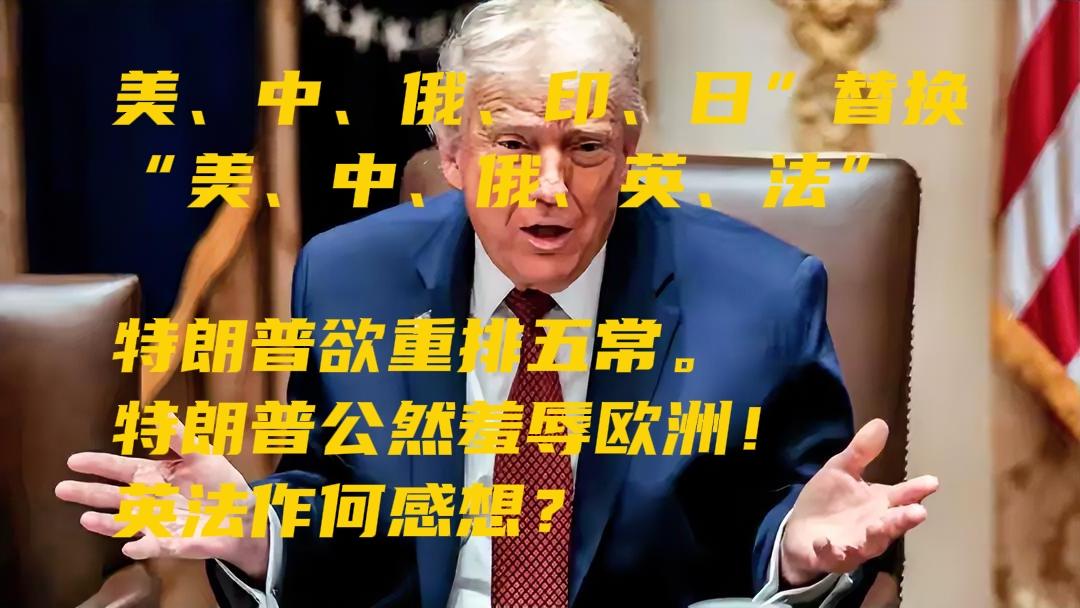 “美、中、俄、印、日”替换“美、中、俄、英、法”? 特朗普是想要要重排五常吗? 特朗普公然羞辱欧洲! 英法作何感想?
