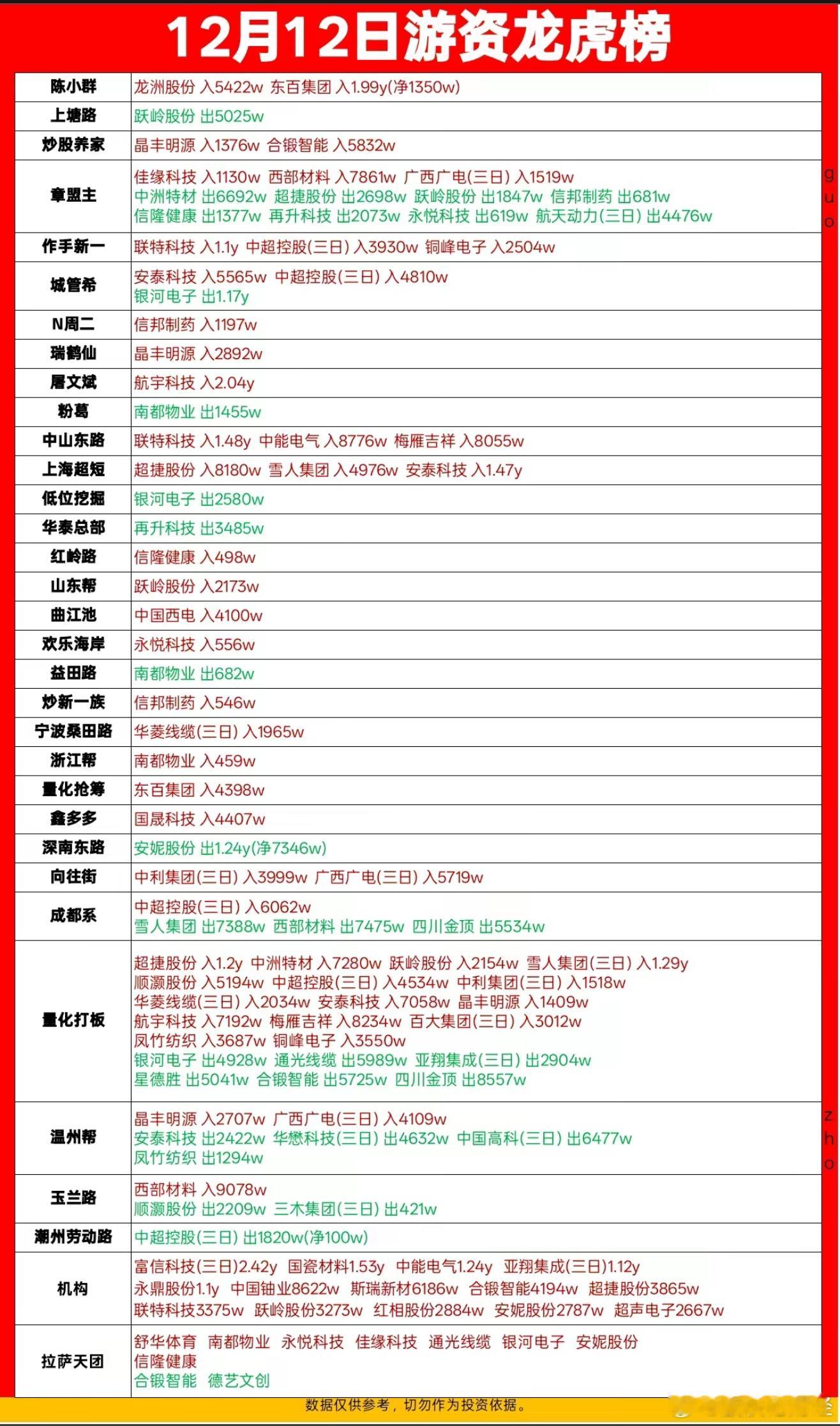 12月12日周五顶级游资-龙虎榜!看看游资大佬都买了啥股票?游资狙击