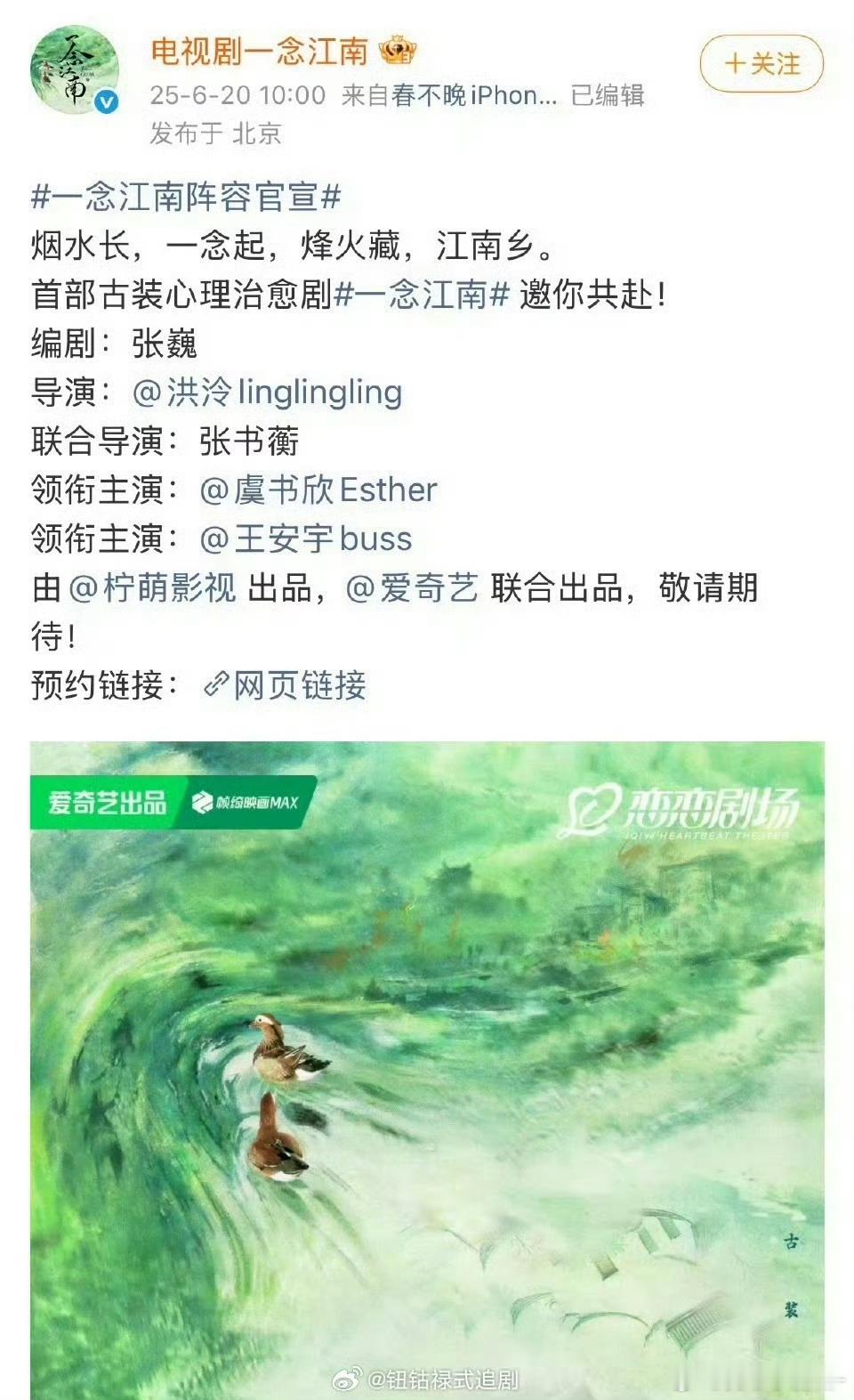 《一念江南》删除虞书欣相关微博,并取关了虞书欣