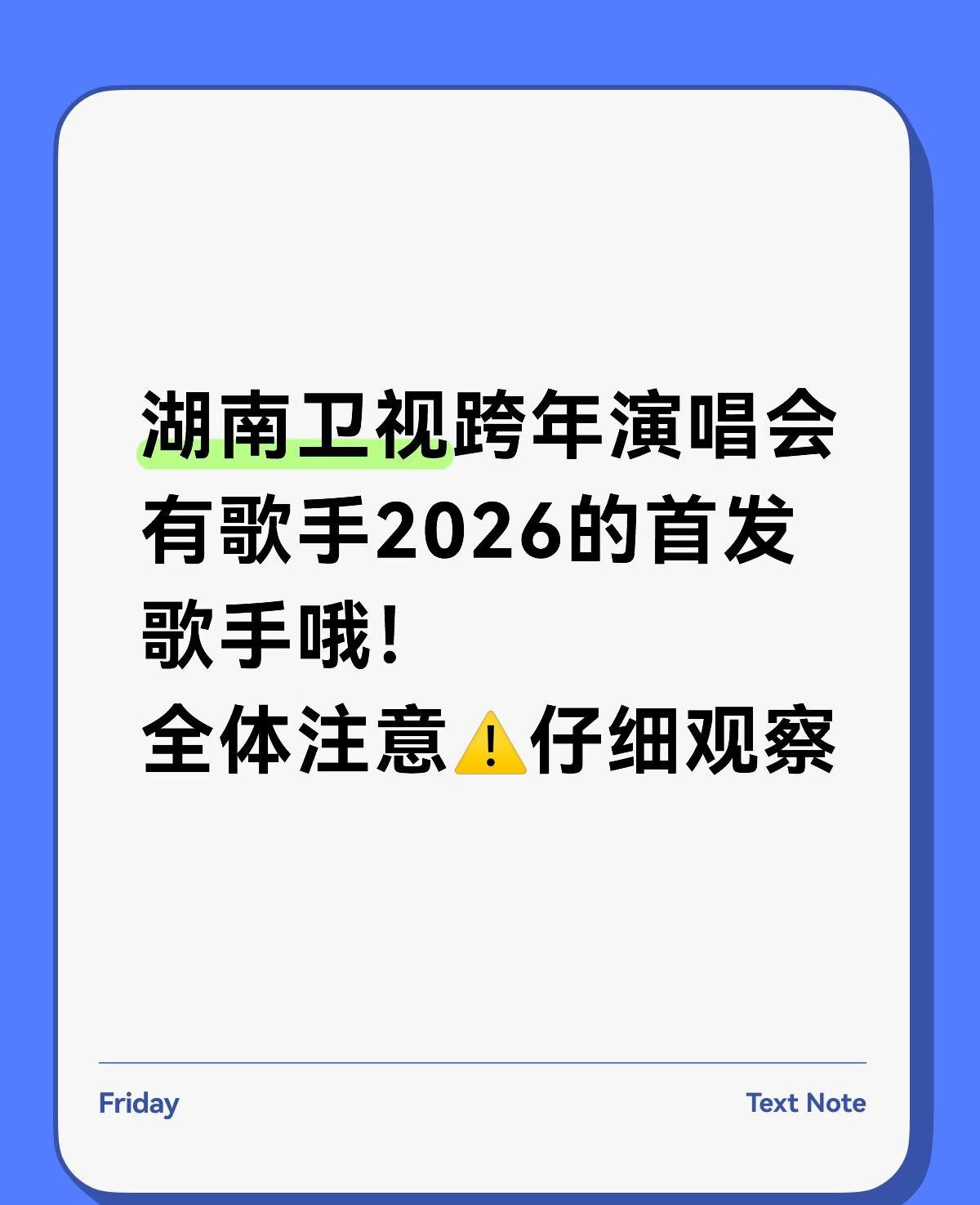 湖南卫视跨年演唱会有歌手2026的首发歌手哦! 有点期待🥰! 据说有陶喆,萧亚轩,王心凌,郭静。 另外还有林宥嘉。 这阵容怎么样?