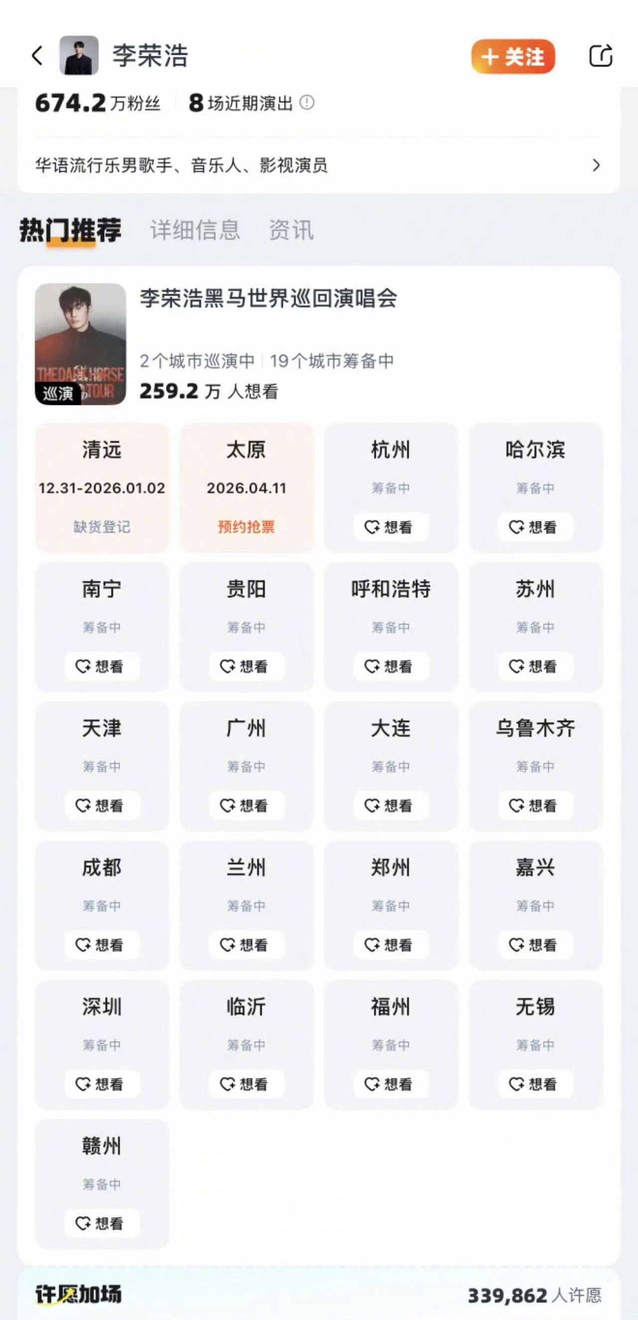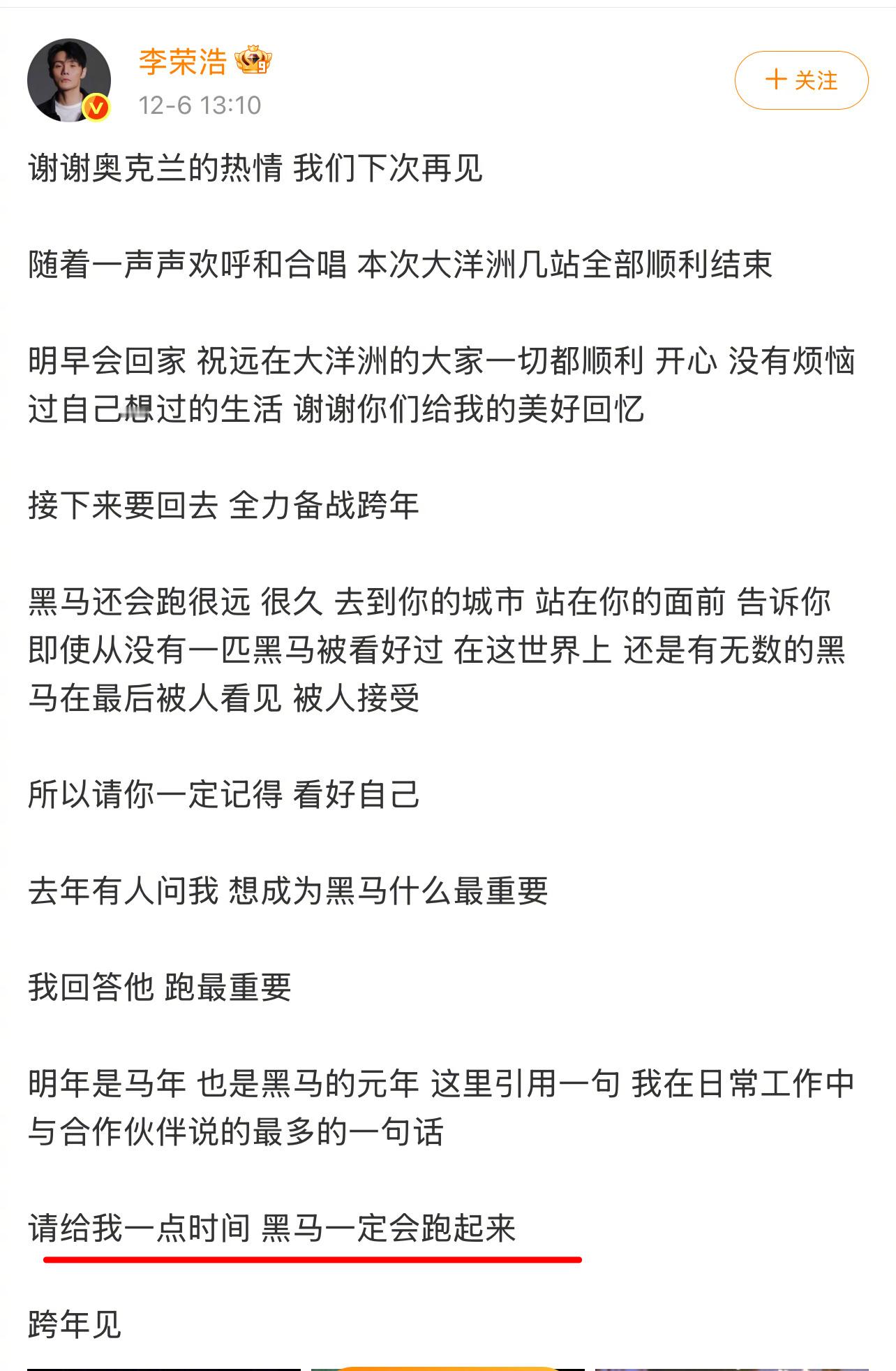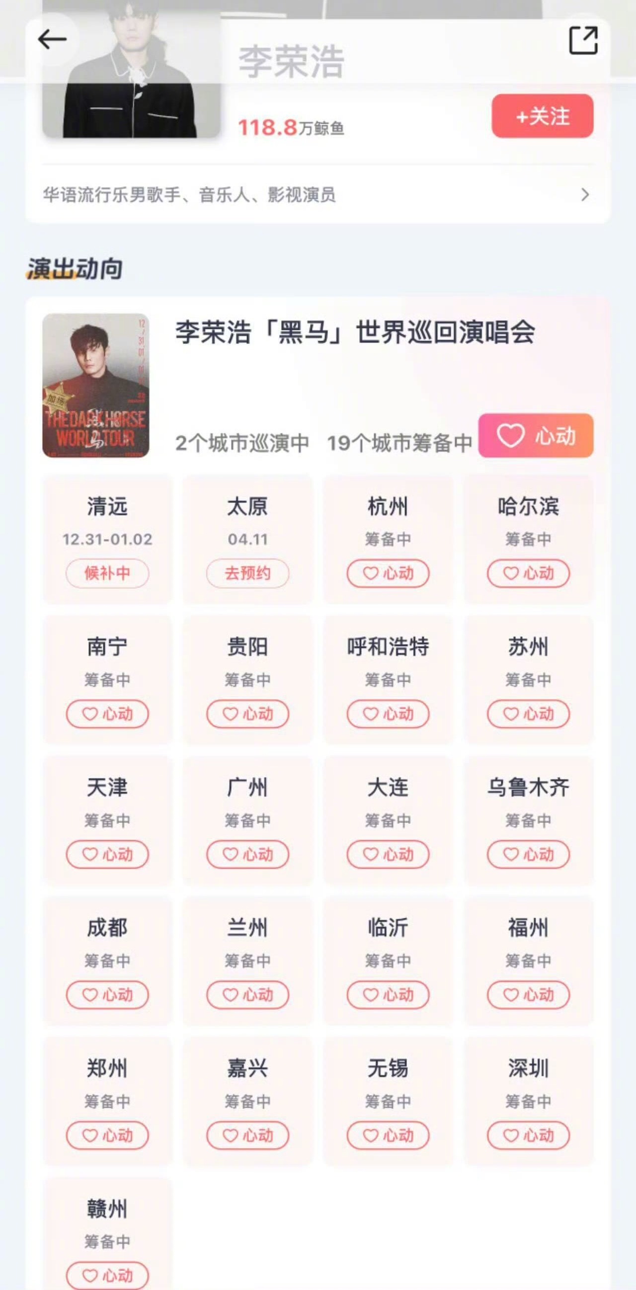 李荣浩说到 李荣浩做到 李荣浩不愧是说到做到的行动派! 去年放话“黑马一定会跑起来”,今年就带着巡演强势来袭,筹备城市阵容爱了啊啊啊啊,26年这波福利简直不要太给力!蹲住巡演,坐等奔赴现场狂欢!!