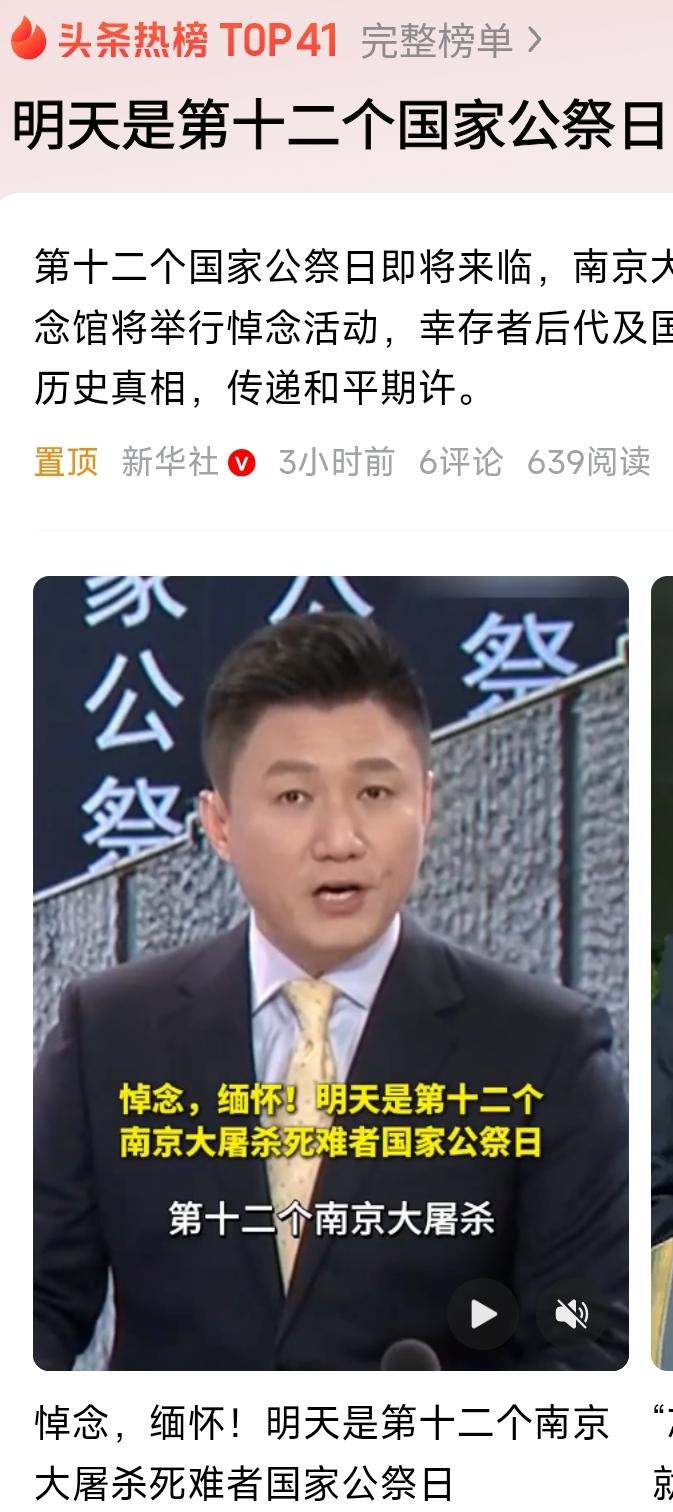 12·13公祭日:这组数据,每个中国人都该刻在心里 明天,是第十二个南京大屠杀死难者国家公祭日。88年过去,有些数字在减少,有些力量却在壮大,每一个都藏着民族不能忘的记忆。 登记在册的南京大屠杀在世幸存者,如今只剩24位。今年又有8张鲜活的面孔从彩色照片墙变成黑白,他们的证言正在倒计时,但真相从不会褪色。纪念馆的"哭墙"上,10665个遇难者姓名静静排列,这是30万同胞的缩影,每一笔都刻着苦难。 更让人动容的是传承的力量:3.5万余名志愿者组成"紫金草服务队",每年500万人次走进纪念馆,12万余条留言里,"和平""铭记"是最高频的词。15岁少年花2万余元买下日军战地信件捐给纪念馆,9岁的幸存者后代接过传承接力棒,连拉贝的孙子都加入进来,跨国守护真相。 从2014年立法公祭至今,12年时间里,我们收集了573件新文物,《南京大屠杀档案》入选世界记忆名录,舞剧、绘本、云班会让历史走进年轻人心里。如今的南京,中华门的弹痕旁游人如织,昔日断壁残垣已成繁华都市,这正是对遇难同胞最好的告慰。 今天的我们,不必再经历战火,但不能忘记:和平从不是理所当然。这些数据背后,是30万同胞的生命,是一代人的坚守,更是吾辈的责任。 你会用什么方式纪念这个特殊的日子?是点亮电子烛光,还是带孩子了解历史?评论区留下你的行动,让我们一起把记忆传下去。