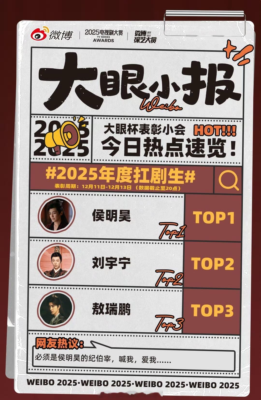 微博评选的2025扛剧生:侯明昊、刘宇宁、敖瑞鹏