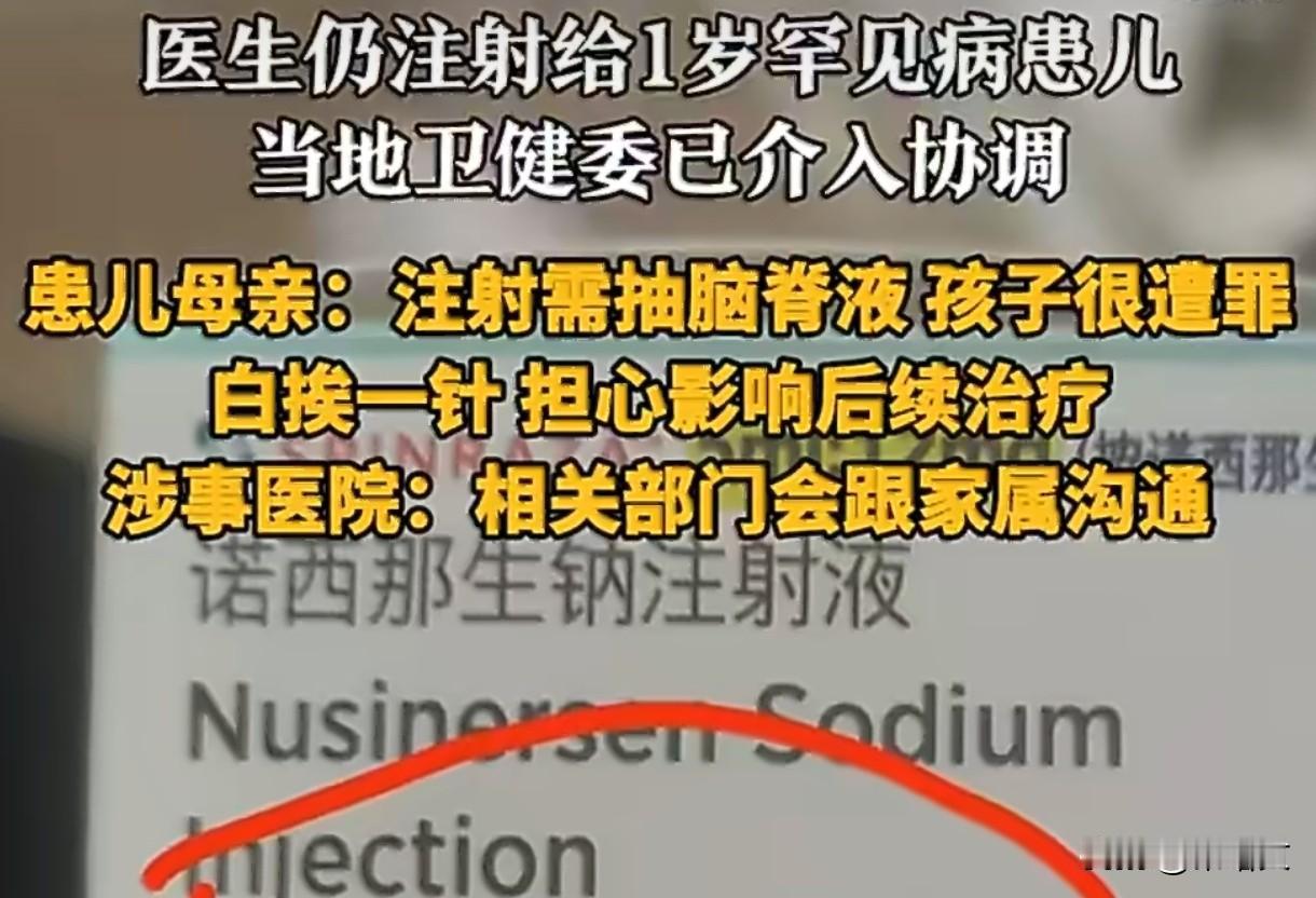 3万救命针被冻成冰?1岁患儿的治疗窗口期,容不得半点疏忽 四川王女士的遭遇让无数家长揪心,1岁宝宝患婴儿型脊髓性肌萎缩,在重庆医科大学附属儿童医院打关键第三针,竟疑似被注射了冷冻后化冻的药。 这药可不是普通针剂,原价70万一支,国家医保谈判后才降到3万3千多,是无数SMA家庭的救命希望,说明书明确写着2~8度冷藏,绝对不能冷冻。 宝宝的治疗遭罪又关键,得先抽5毫升脑脊髓液和药兑着,再从腰部鞘注,整个过程孩子哭得撕心裂肺。按疗程打完4针,孩子本有机会独立行走。 可王女士从监控里看到的一幕让她崩溃:医务人员从冰箱冷冻层拿出药,用冷水冲、用手搓快速化冻,全程没人制止,最后还是把这疑似失效的药打给了孩子。 现在正是孩子治疗的黄金窗口期,这一针很可能已经失效,后续治疗节奏全被打乱,之前的罪都白受了,全家凑钱治病的心血也可能打水漂。 谁都知道罕见病家庭有多难,为了这有多难,为了这针救命药,家里可能砸锅卖铁,孩子还要承受鞘注的痛苦,就盼着能抓住这来之不易的康复机会。 药品储存本是医疗底线,尤其是这种对温度极度敏感的特效药,一步疏忽就可能毁了一个孩子的未来,换哪个家长能接受这种“低级错误”? 事发后王女士赶紧申请封存病历,就想讨个公道。医院说在对接处理,重庆市卫健委也接到投诉在协调,但家长要的不只是“正在处理”四个字。 这药叫诺西那生钠,是治疗SMA的核心药,鞘注操作有严格规范,储存和化冻更是不能有丝毫马虎,这是医护人员最该守住的常识。 家长不怕为孩子倾家荡产,不怕孩子治疗遭罪,就怕拼尽全力抓住的希望,被别人的疏忽和不负责任轻易碾碎,这种心寒比任何痛苦都难熬。 医疗无小事,尤其是面对脆弱的患儿和满怀期待的家长,每一个操作都该慎之又慎,每一份药品都该妥善保管,这是责任也是底线。 现在全网都在等一个明确的调查结果,希望能严查涉事人员,补上管理漏洞,给患儿家庭一个公正交代,也让所有家长能放心带孩子就医。 救命药容不得半点马虎,医疗责任更不能有丝毫松懈,孩子的未来,赌不起也伤不起。 愿每个患儿都能被温柔以待,每一份希望都不被辜负。