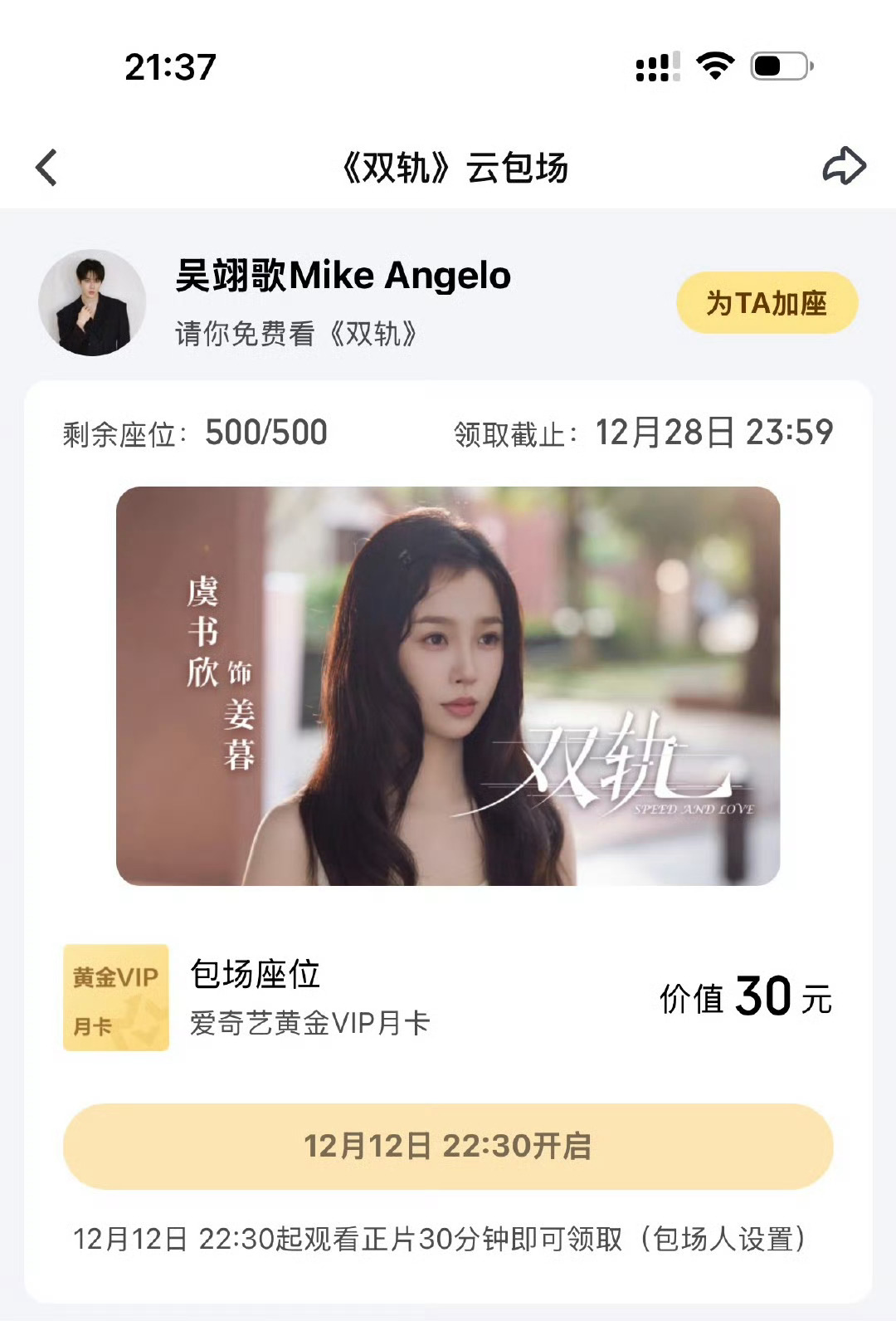 吴翊歌云包场双轨 云端的约定从未失约,双轨空降的惊喜,是追星路上的小确幸~双轨空降