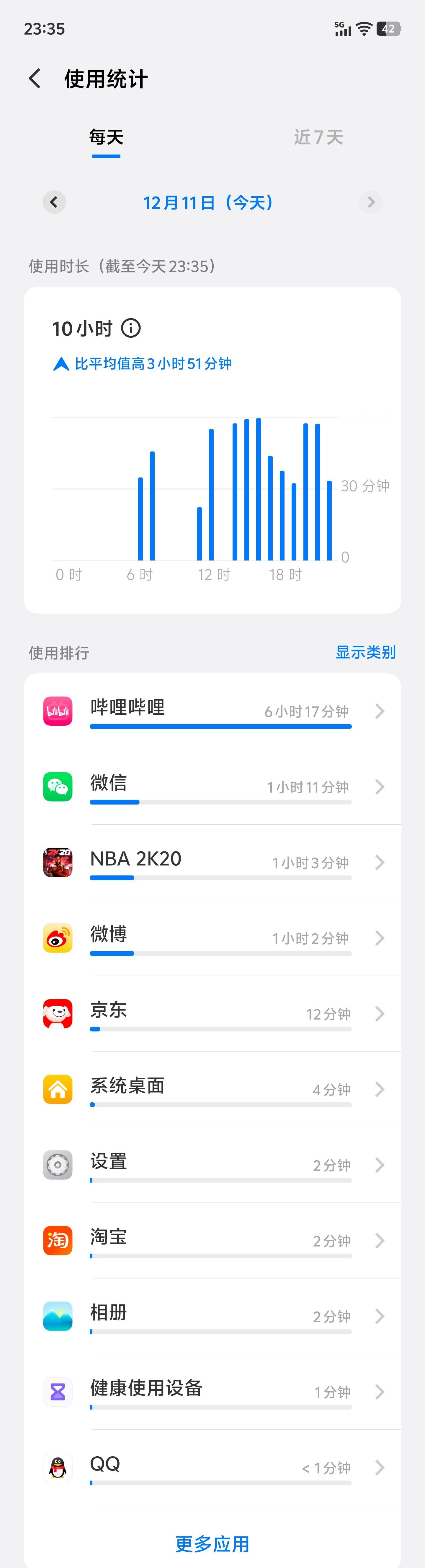 iQOO 15电池续航实测:搭载了7000毫安时电池+2K屏+第五代骁龙8至尊版的它,续航究竟如何?早上7点25分满电开始用,亮屏时间10个小时的超重度使用(1080P视频6小时17分钟,微信1小时11分钟,微博1小时2分钟,NBA2K游戏1小时3分钟),到晚上23点35分,剩余电量42%。还满意吗?