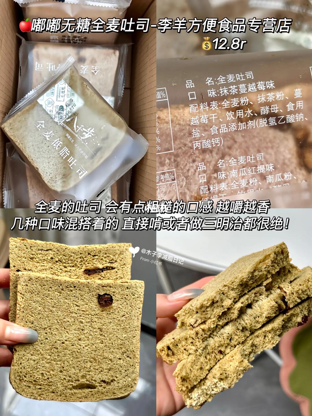 建议减脂女孩都必囤,配料表干净,主打一个吃的开心!! - ①芋泥麻薯欧包 ②无蔗糖粘豆包 ③糖心红薯 ④无糖全麦吐司 ⑤威化蛋白棒