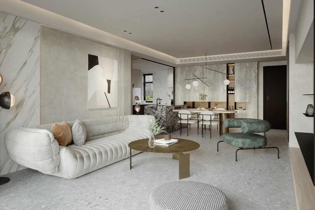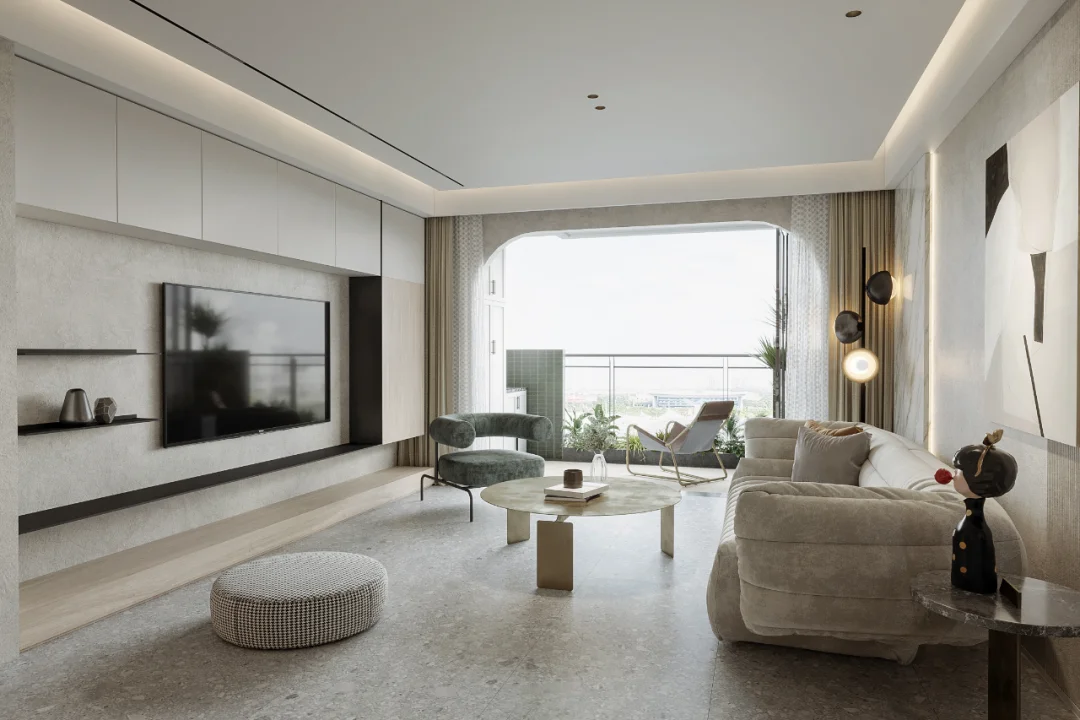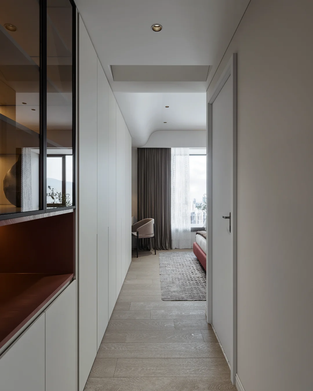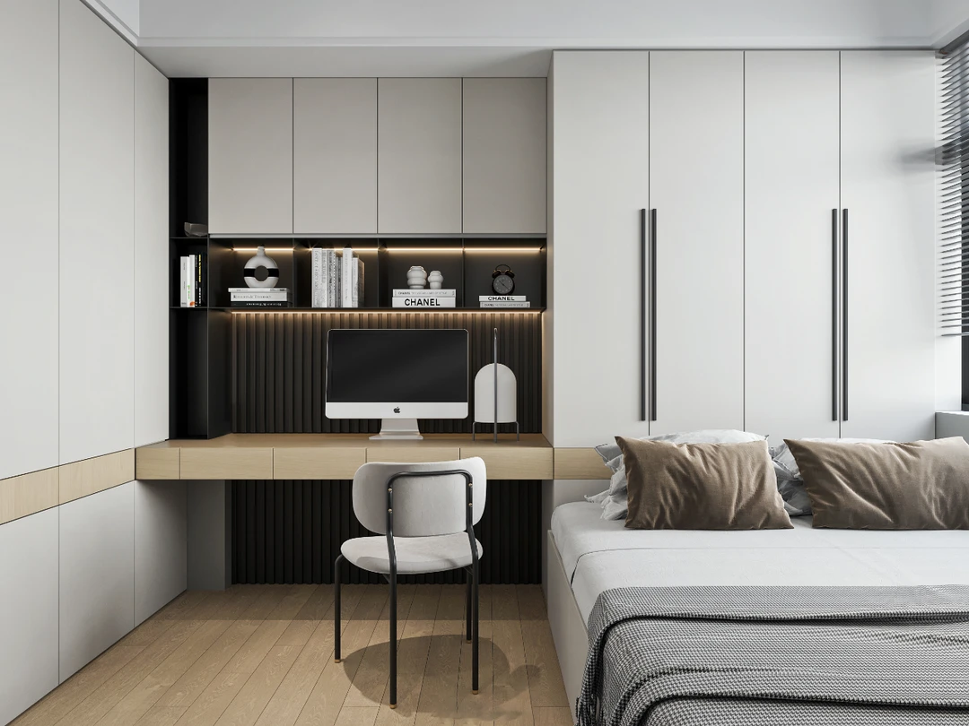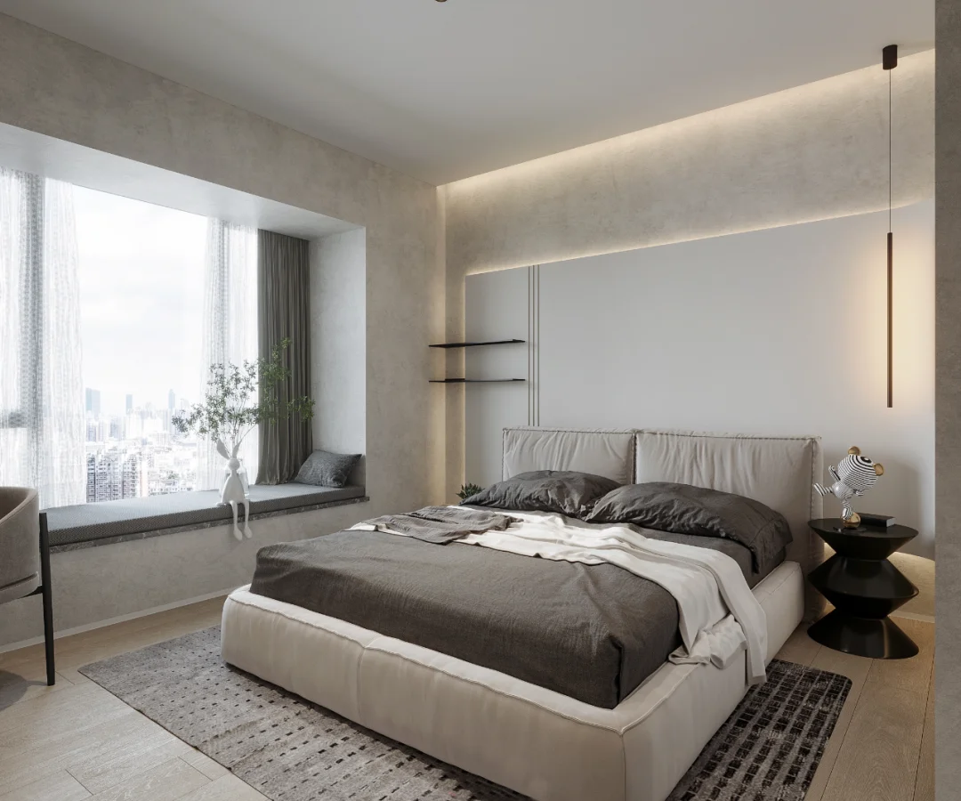 本案为奶油风,永不过时的经典色,平顶设计,没有过多的装饰,极致的简单就是高级的表现。地面首选了小纹理木地板,温馨又不失高级感;局部做了弧形处理,增加了软乎乎的感觉;主卧室床头打破传统设计,简约造型配灯带,从此告别卧室的单调性;次卧榻榻米、衣橱和工作台的完美结合,节省空间的同时增加了收纳功能;整体设计让空间的面做到了统一的同时又富含有层次感。