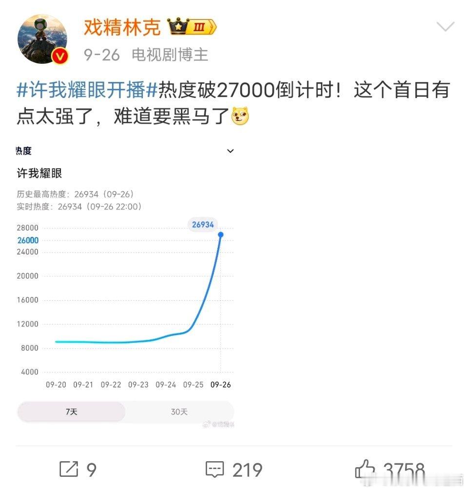 同样空降,《许我耀眼》才是真正的毫无预兆,结果第一天就涨幅惊人,当天晚上就话题度