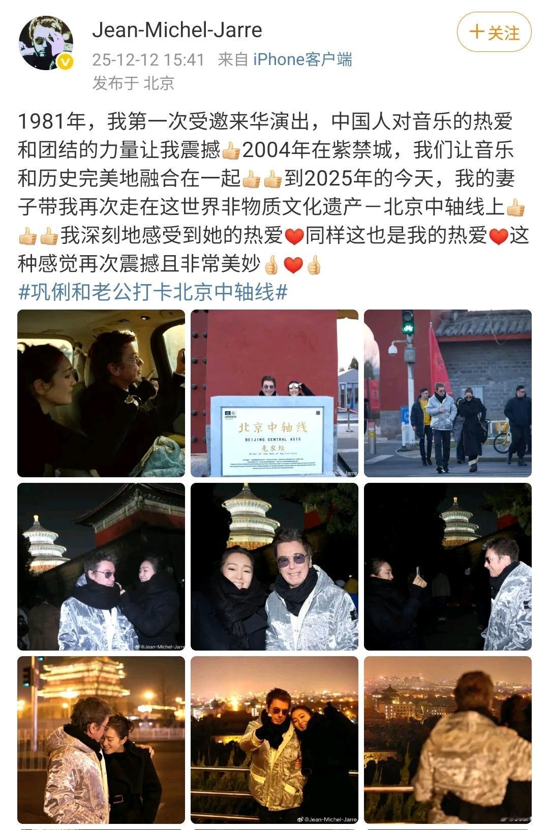 两个人从南逛到北,从北逛到南,从白天逛到晚上,一起形影不离,好不亲密。 看得出巩俐的国外老婆对于北京非常喜欢,甚至还在北京中轴线的地标上打卡了好几张照片。 两位德艺双馨的艺术家用这样的方式,为我们展现了婚姻的美满生活。 不知道大家看完这两人,会不会也都想结婚?