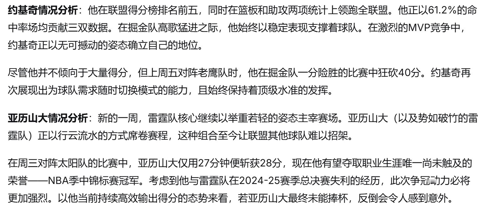 NBA官方最新一期MVP排行榜,依旧是约基奇第一,亚历山大第二,3-5位是东契奇、坎宁安和杰伦·布朗。评语原文是下图P1,翻译版是P2,正式投票时作者Shaun Powell拥有一票,他上赛季第一选票投给了SGA,而在2023-24赛季他的第三选票选择了SGA,前两票给到了约基奇和东契奇。编辑by 蓝色狂潮OKC雷霆雷霆晋级nba杯半决赛雷霆大胜太阳49分