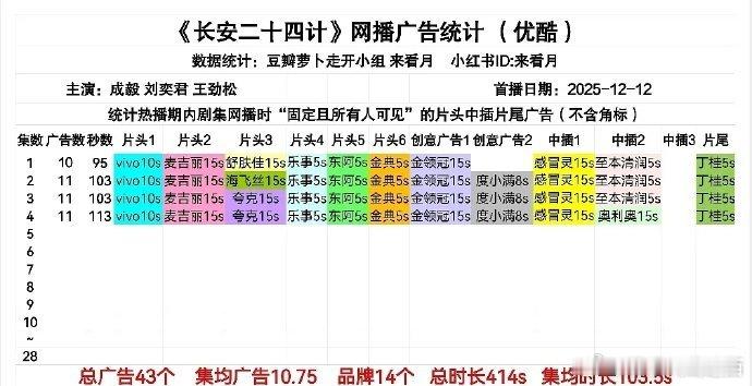 长安二十四计 第一计成毅《长安二十四计》开局10广,第2集11广,共14个品牌,招商一如既往🐮 ~看了第一集质感非常好,很久没有追这么正统的权谋复仇剧了(还在抢云包场中ing