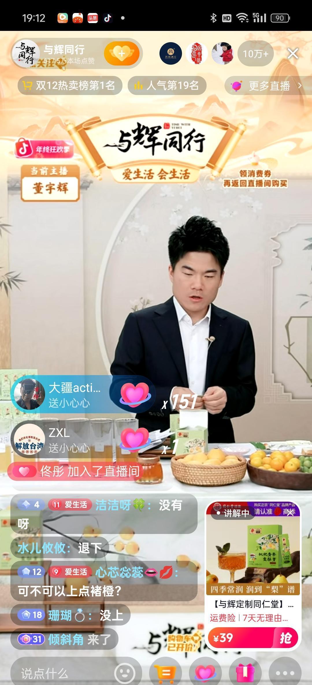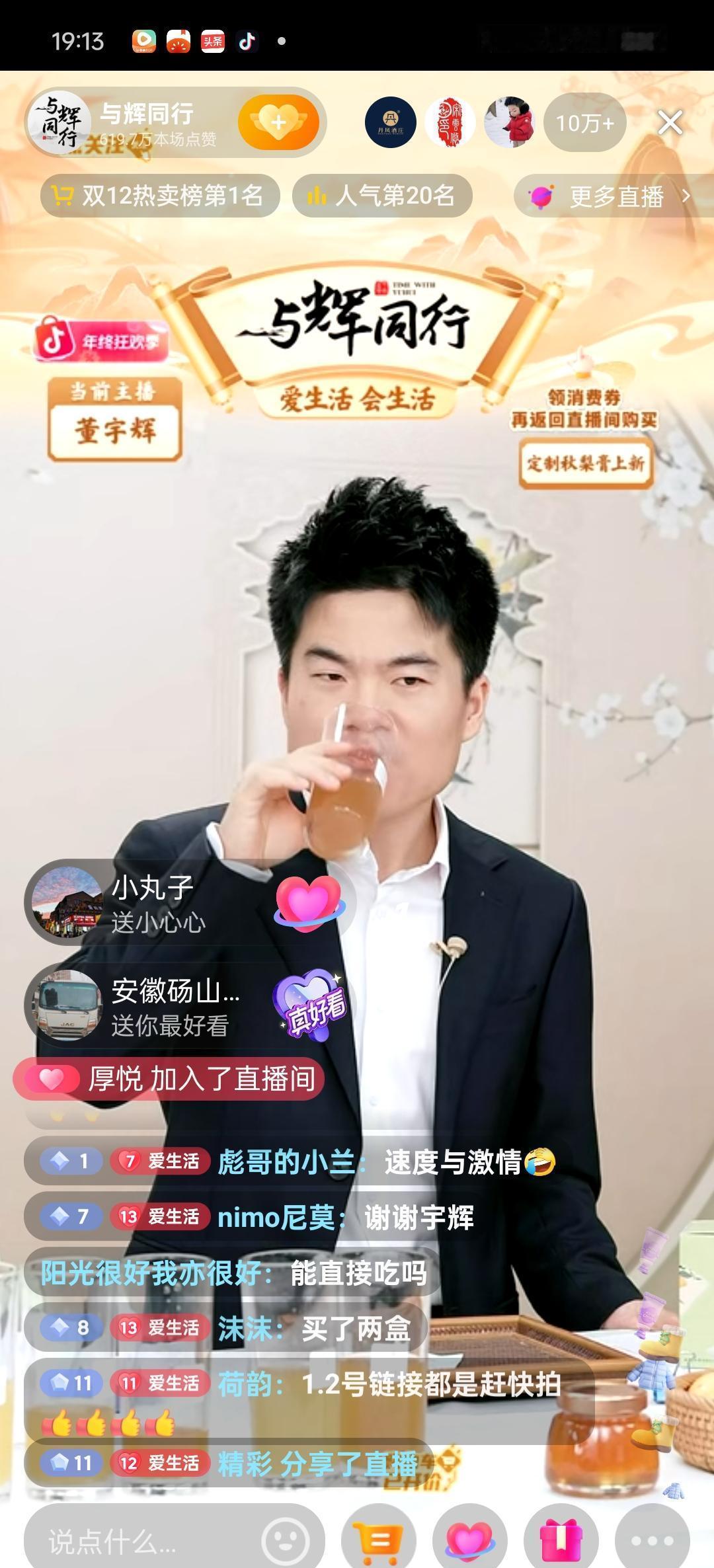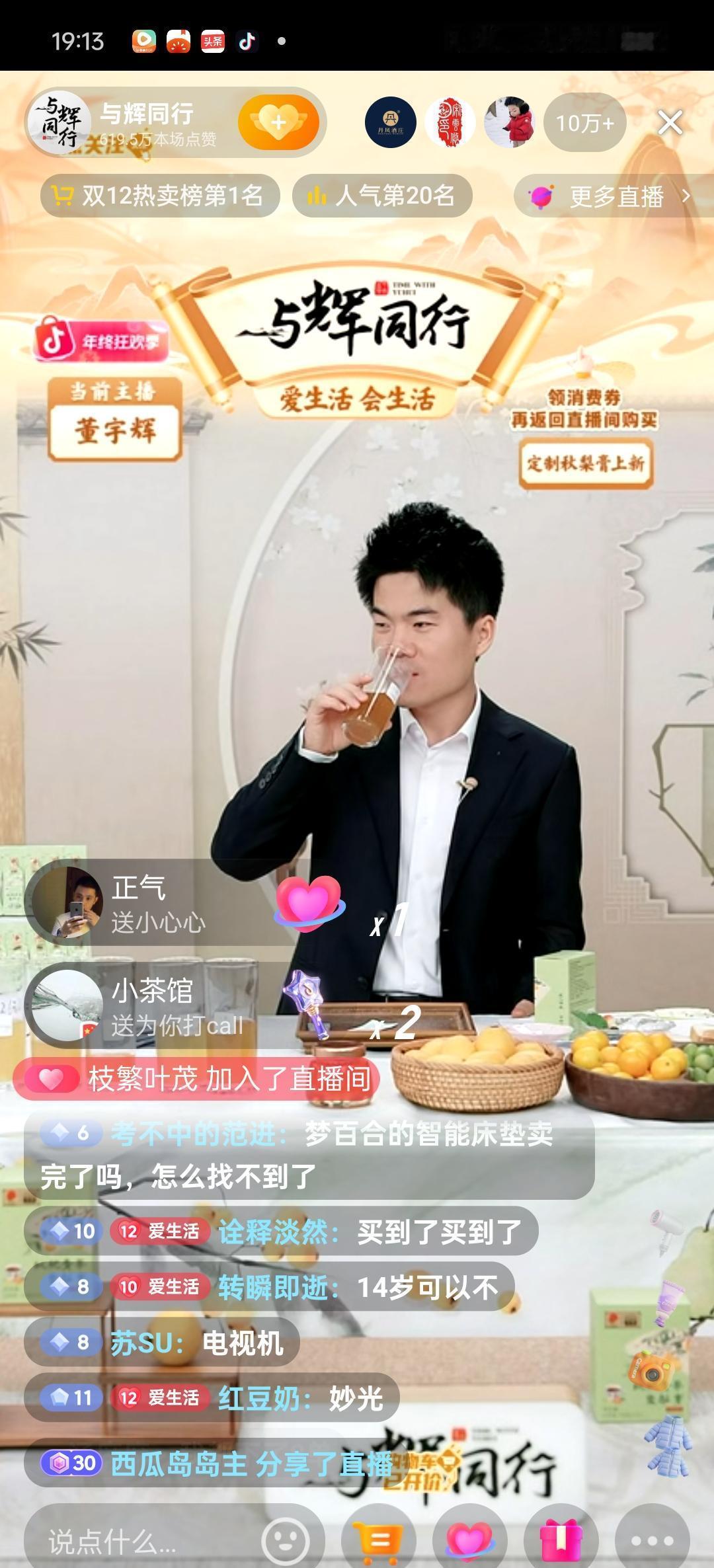 董宇辉直播间刚才又上演了一出“闹剧”,几万人在线刷屏让他“闭嘴赶紧上链接”,这话听着损,其实全是丈母娘们无处安放的购买欲啊! 还没等宇辉把那个同仁堂定制款的介绍词说完,1盒装的1分钟没影了2万单,2盒装的紧接着又是1万单秒空,这手速真的不需要去练练奥运项目吗? 咱说实话,这真不是简单的“饥饿营销”。 我特意去翻了翻新京报刚出的数据,与辉同行这一个月场均观看人次飙到了1500万,复购率比行业平均线高出了整整30%。 这说明啥? 说明大家不是冲动,是真信得过。 特别是这种定制品,平均2分15秒售罄,宇辉在镜头前还得苦口婆心解释“定制需要质检周期”,生怕大家等急了,那股子认真劲儿确实招人疼。 最戳人的细节是,即便卖得这么火,他也没飘,还特意去确认了“3岁以下不建议使用”这种劝退条款,一遍遍在直播间喊。 这年头,把“别买”挂嘴边的主播,除了他也没几个了。 这种“内容+靠谱”的路子,活该他火。 话说回来,你们今晚是那个幸运的“分母”,还是跟我一样连个“库存不足”的影子都没看着? 评论区晒晒战绩,让我死心!