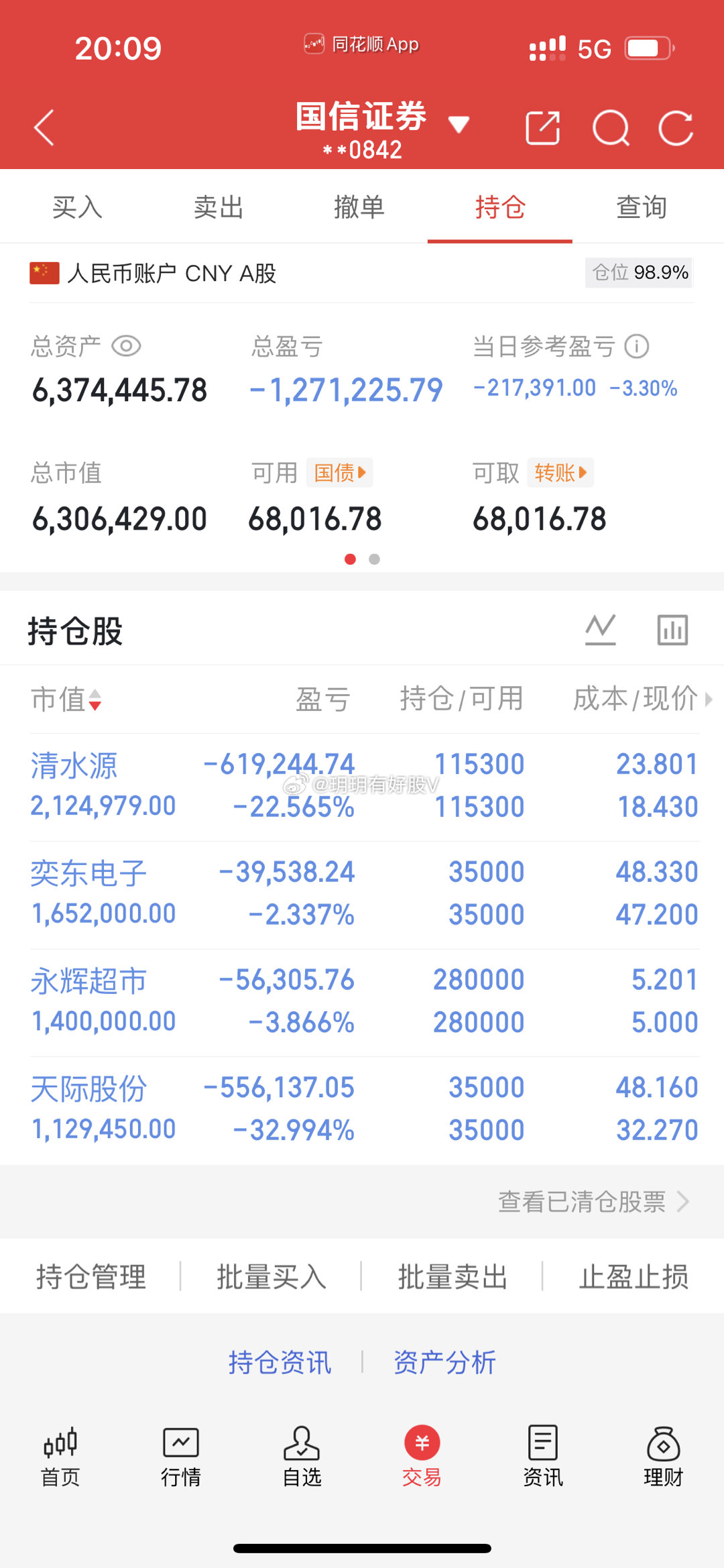 200万本金,一年实现5倍翻,目标突破一年做到1000万(第141天)