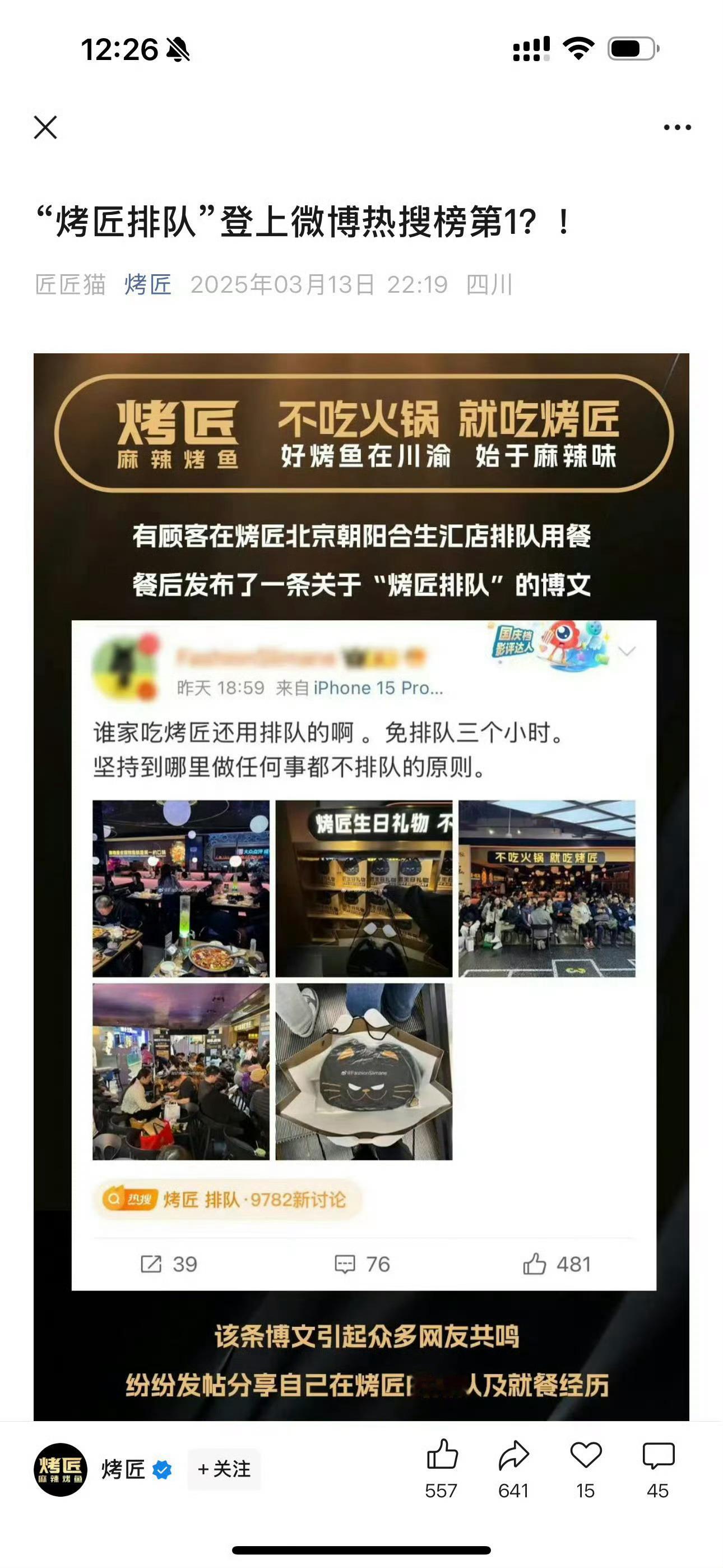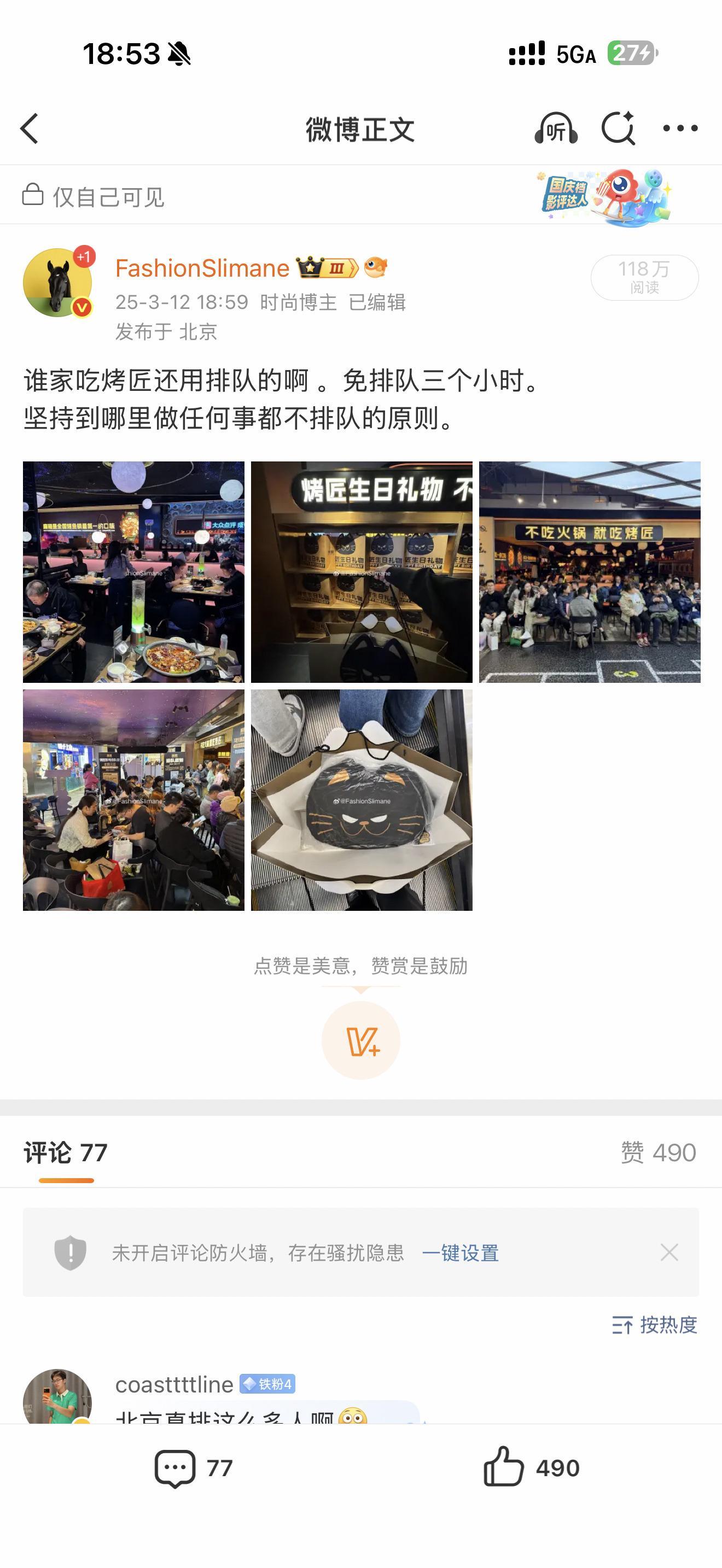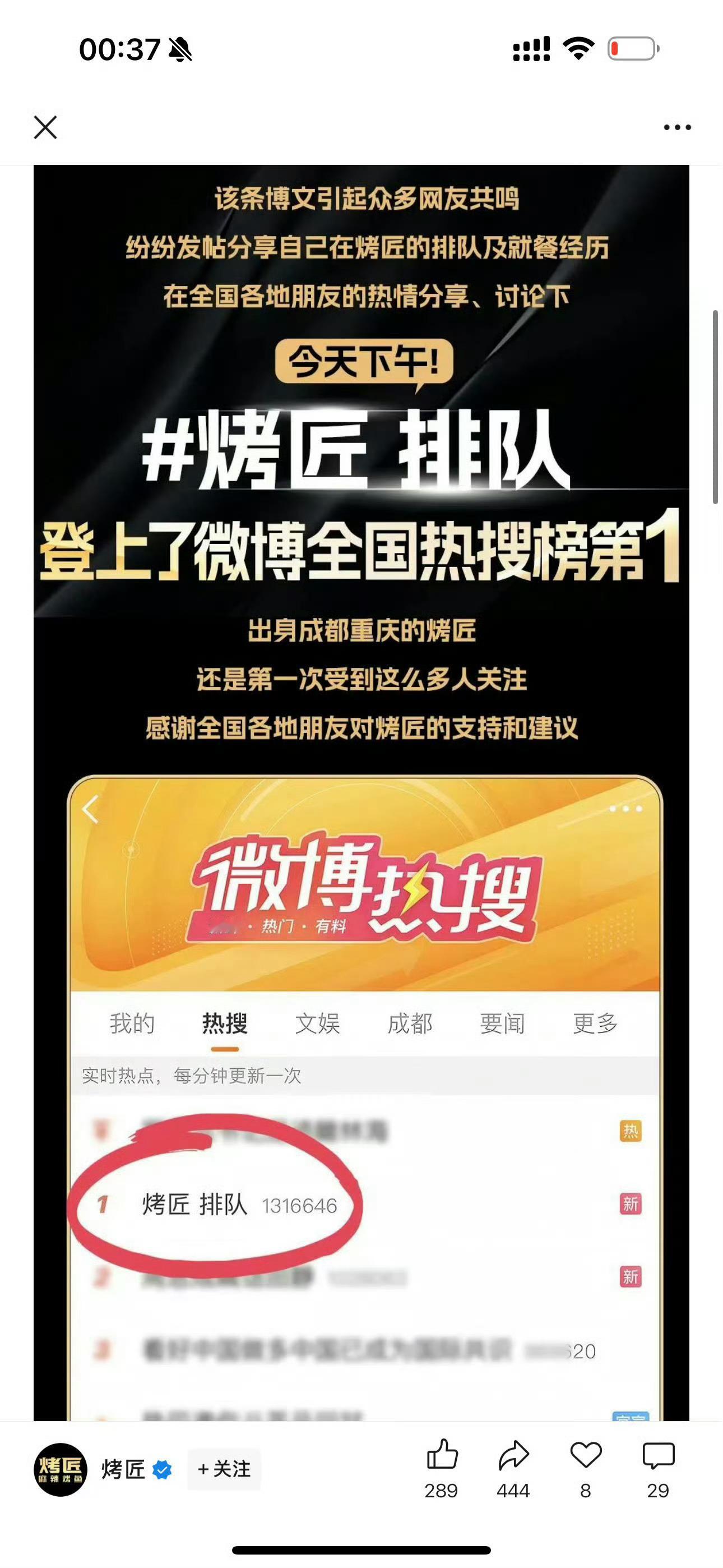 烤匠 热烈庆祝 北京的五店北京西单大悦城店今天正式开业,今天北京下了今年第一场雪,非常好的兆头瑞雪兆丰年。从北京的首家合生汇开业,我无意中去店里吐槽人多之后,结果搞上了全国热搜第一。从朝阳合生汇店开业后,现在已经开到了五家店。从成都到北京,马上上海店西安店都会开业。未来烤匠还会遍布全国许多城市。 当时 热搜第一之后他们立刻私信我了,我说那我就带粉丝们吃一顿吧。有特意从长沙来北京的粉丝,也有许多本地北漂的女生,大家五湖四海的聚在一起吃烤匠。暖暖的冬天说说话真的很暖。我还给大家拍了照片。 这次5店开业,我又作为微博推广大使野生代言人去提前品尝了,品质还是一如既往好,这次选了青椒味,口感非常不错。点了很多烧烤,尤其是凤梨烤牛肉牛肉我特别爱吃。还有烤脑花烤鱿鱼须都不错。不是广告。 推荐大家去吃啊。 北京·西单大悦城