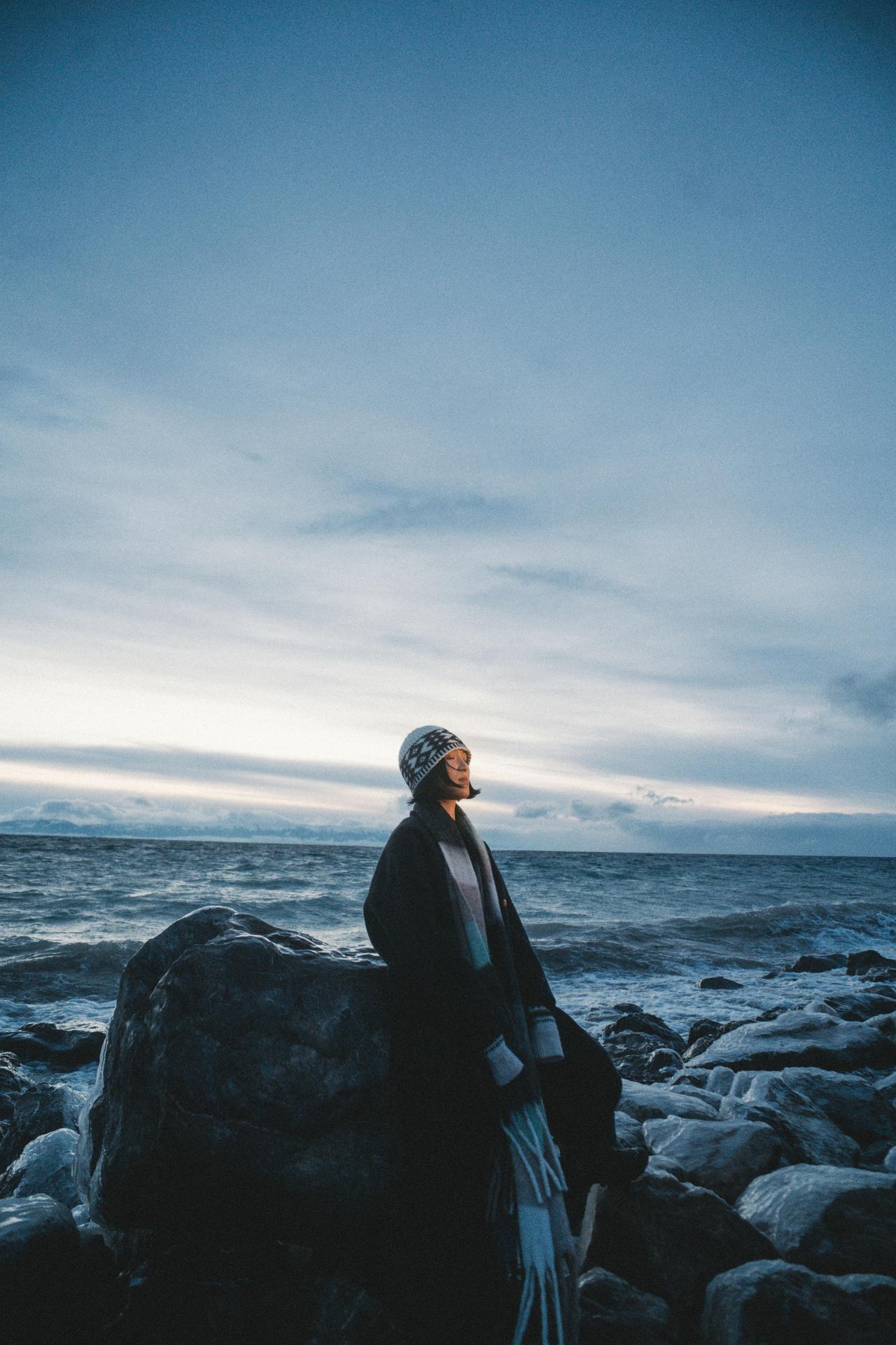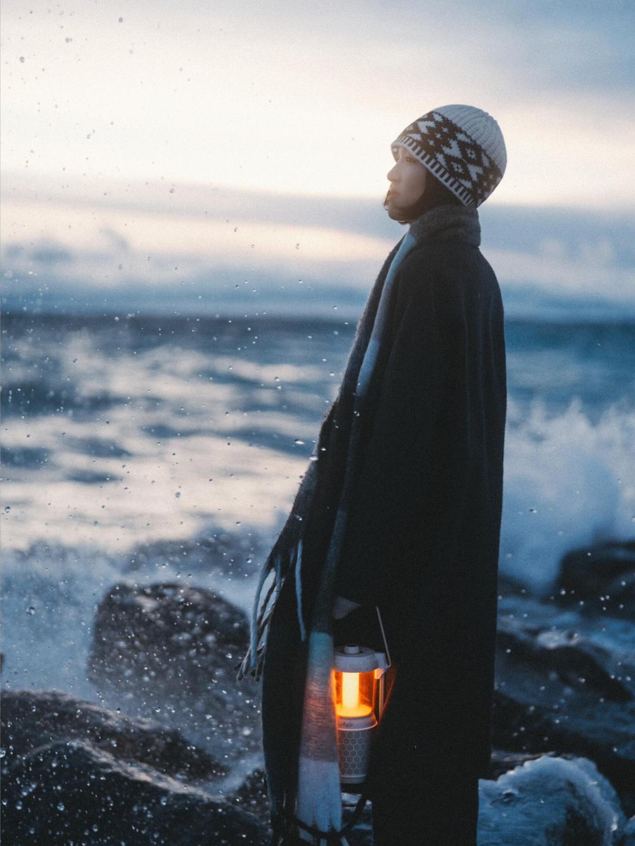 道具是海边少女摄影中传递情绪的关键,这组照片里的复古灯笼,既是视觉元素,也是情绪的载体。冷调的海边环境自带孤独、静谧的氛围,而灯笼的暖光则赋予画面温暖与希望,与少女沉静的神情形成完美呼应。晒图笔记大赛 选择道具时,我避开了网红感的装饰,而是选了质感朴素的灯笼,它的金属框架和暖黄灯光,与海边的粗粝礁石、清冷海水形成材质与色彩的对比。拍摄时引导少女与道具自然互动,比如轻提灯笼、低头凝视灯光,这些动作能让人物情绪更饱满,也让道具不显得突兀。另外,让灯笼的位置处于画面的黄金分割点,既能突出道具的作用,又不会抢了人物的风头。通过道具的暖光与环境的冷色对冲,让少女的情绪从“沉静”中透出一丝温柔,让画面的情绪表达更有层次。