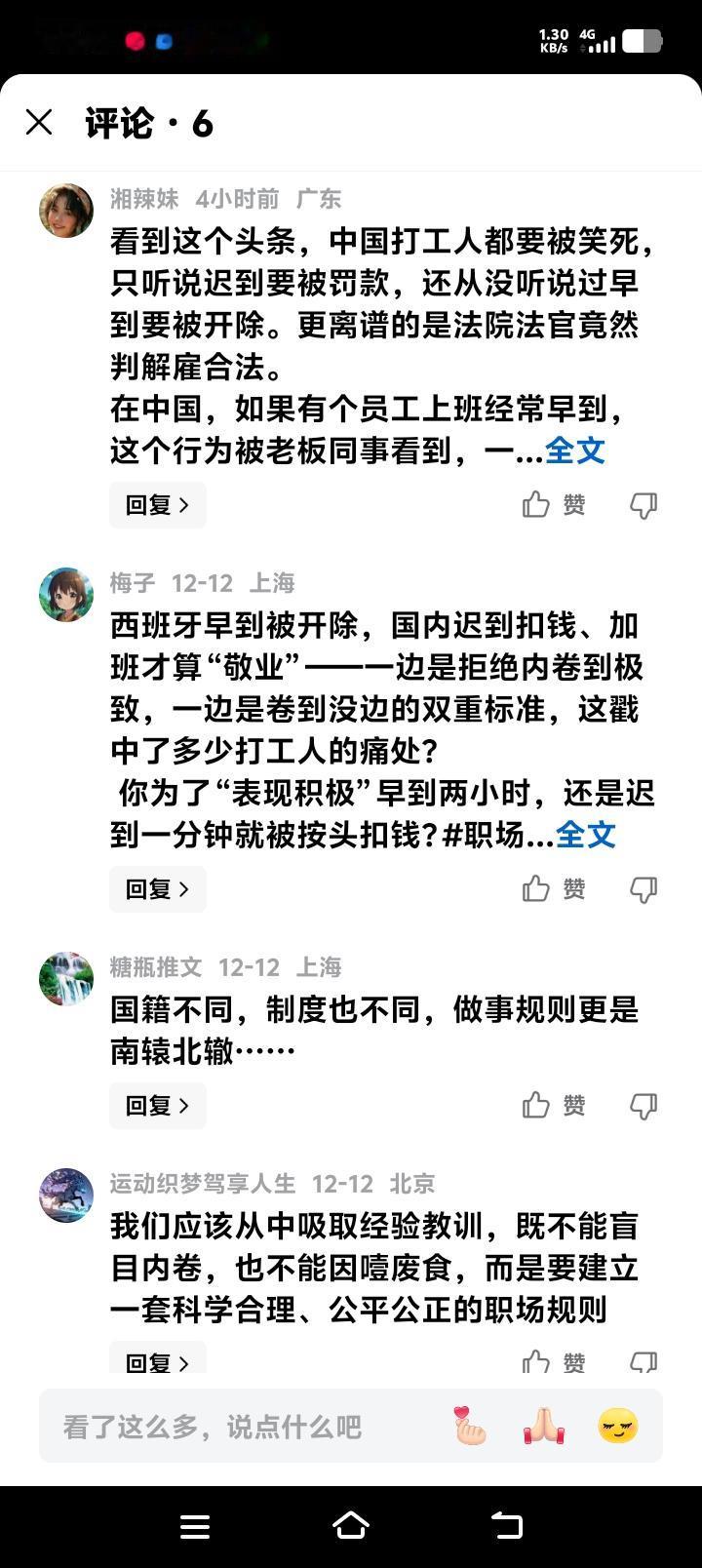 西班牙快递公司清晨六点开除“早到狂魔”,法院竟支持!全球打工人炸锅:我们的勤奋错在哪? 清晨六点的马德里天色未亮,街道寂静无声,却有一名22岁的女员工悄悄走进快递公司办公室。她不知道,这份超越合同时间的“勤奋”,即将引爆一场横跨欧亚的职场文化战争。公司主管多次警告无果后,竟以“扰乱团队协作”为由将她开除,更令人震惊的是西班牙法院判决解雇合法! 这则新闻漂洋过海传到国内,瞬间撕开了全球打工人的认知裂缝。在加班成常态的我们看来,早到被开除就像天方夜谭。那位西班牙姑娘或许至今不解,自己迎着晨曦赶路的身影,为何成了同事眼中的“压力源”,甚至触犯了《西班牙工人法典》第54条。 深入剖析才发现,这场荒诞剧背后藏着欧洲职场森严的规则壁垒。在德国、法国等国家,提前工作可能被视为破坏集体协议,甚至触发“不正当竞争”警报。那里守护的不是懒散,而是用法律浇筑的职场边界——拒绝任何人用自我牺牲抬高竞争门槛。 然而视线转回国内,场景瞬间切换。周末自觉加班的同事被领导表扬,凌晨两点的工作群消息依旧闪烁。我们熟悉的世界里,“提前到岗”是贴在公告栏的标兵事迹,“自愿加班”是晋升考核的隐形筹码。两种规则猛烈碰撞,激起的不仅是嘲讽,更是深埋心底的焦虑。 网友的尖锐评论折射出全球化时代的认知眩晕。有人感叹“欧洲在拒绝内卷中走向衰落”,有人反驳“国内过度内卷正在消耗一代人”。这场争论早已超越事件本身,变成关于劳动价值、人性尊严与制度设计的灵魂拷问。 仔细想来,西班牙公司的恐惧并非全无道理。当一个人持续突破约定俗成的工作节奏,确实可能无形中挤压他人的选择空间。但将维护“公平”的刀锋挥向最积极的劳动者,何尝不是另一种系统性的冷漠?这背后是僵化的制度对人性的异化。 反观国内职场,当“奋斗”被异化为“透支”,当“敬业”被等同于“无限续航”,我们同样在付出沉重代价。颈椎病年轻化、职场焦虑症泛滥、创造力枯竭……这些都在提醒我们:失去平衡的竞争,终将反噬每个人的幸福。 真正的职场文明,应当既能保护遵守规则者的安宁,也不扼杀超越常规者的热情。它需要弹性空间容纳不同节奏的生命,更需要制度智慧区分“恶性内卷”与“良性进取”。这不是东西方谁模仿谁的问题,而是人类共同寻找最优解的征程。 那位西班牙姑娘的遭遇像一面镜子,照见每个打工人的困境。我们嘲笑别人荒诞的同时,是否也该审视自身所处的规则牢笼?当996成为福报,当带病上班被称赞,我们是否也在不知不觉中,把某种扭曲的生存逻辑当作了真理? 全球化的浪潮里,没有孤岛。今天西班牙法院的一纸判决,明天可能成为某个国际企业的管理范例。这场关于“早到”的战争,最终指向的是人类如何在工作与生活、个体与集体、激情与秩序之间,找到那个充满温度的平衡点。 (来源:综合西班牙《国家报》、欧洲职场法规案例及跨国企业人力资源管理研究) 职场文化冲突