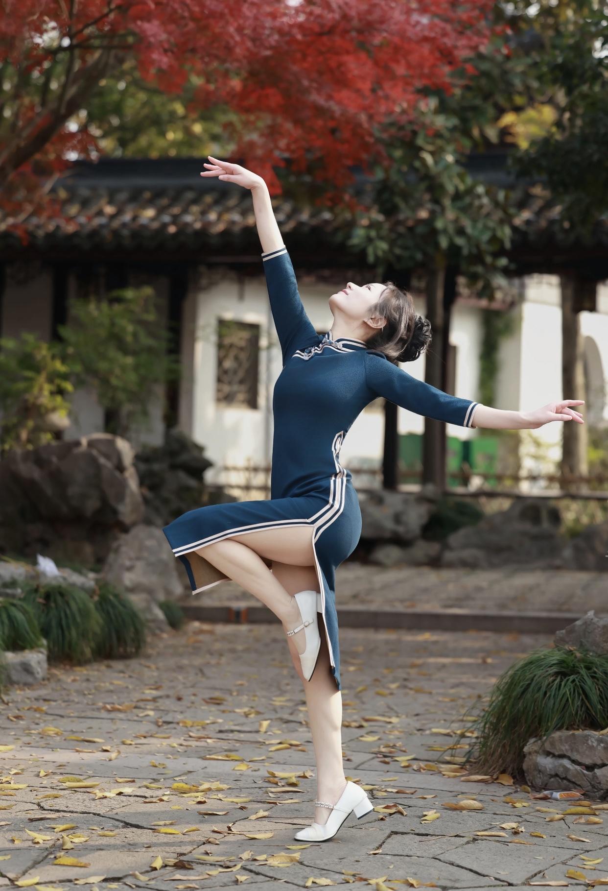 有哪些经典的中式美人秋日舞蹈,红叶飘舞间,优雅舞姿展风采。