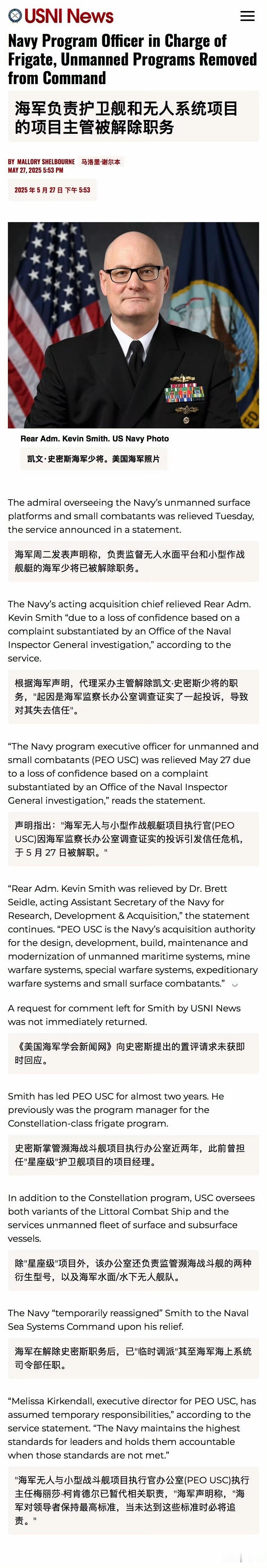 美海军的好消息:美国海军围绕荷兰 LST-100 重塑中型登陆舰项目LSM,由美国海军海上系统司令部NAVSEA负责,被命名为麦克隆级的中型登陆舰将在美国海军陆战队《兵力设计》改革框架下执行运输任务,该改革要求组建配备反舰武器的机动跳岛作战部队。美海军的坏消息:负责过濒海战斗舰和星座级护卫舰项目的史密斯少将,5月份被美海军撤职后,调到NAVSEA去了。