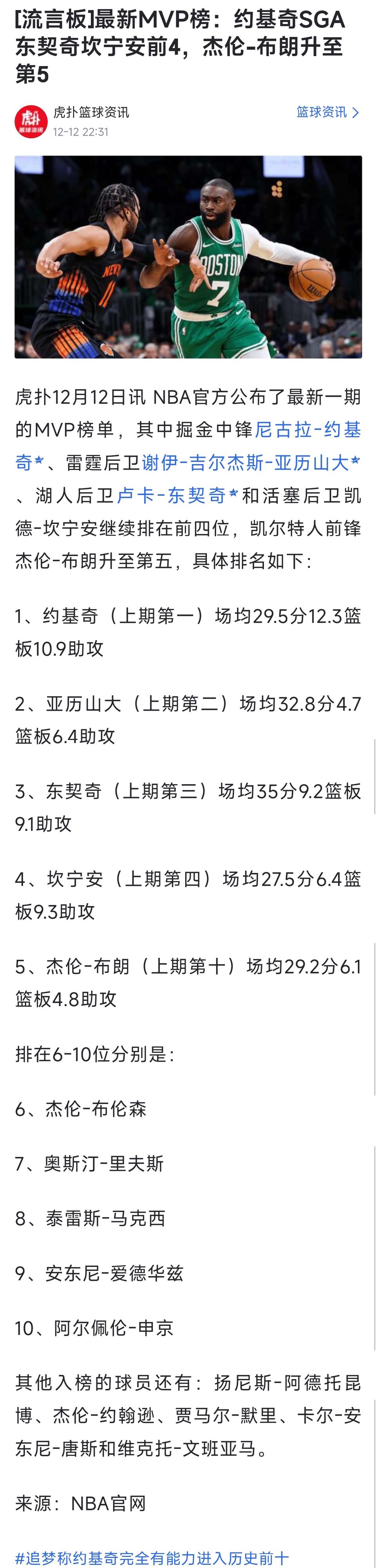 今年MVP之争只看雷霆最终成绩。 现在约基奇是第一,数据超级豪华。 但是亚历山大带队突破73胜,那就能反超约基奇。 希望联盟看成绩,而不是数据。[偷笑]