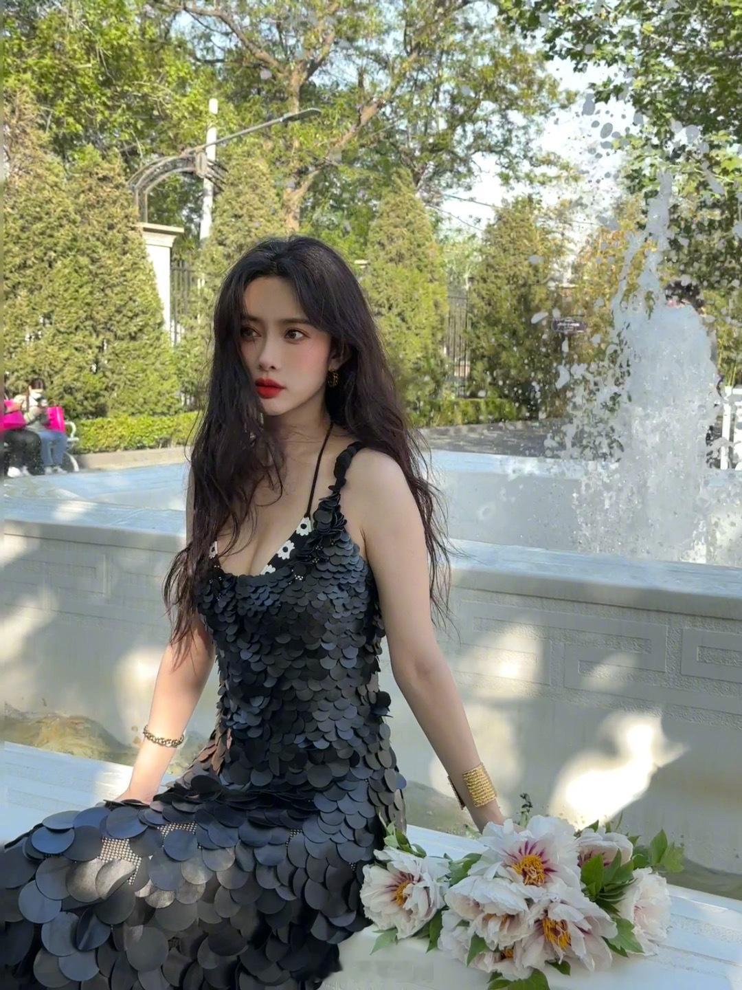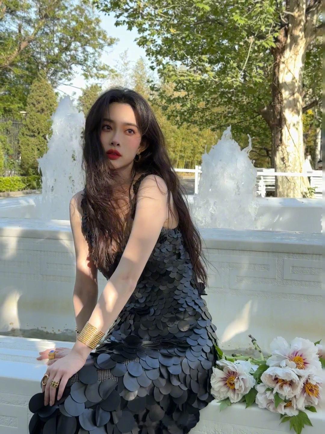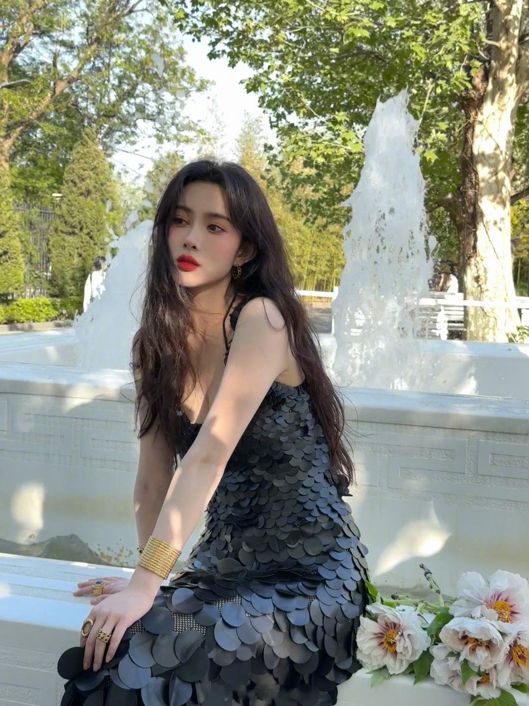 高圆圆旁边这是谁啊??身材好好啊,就是这个裙子的布料……